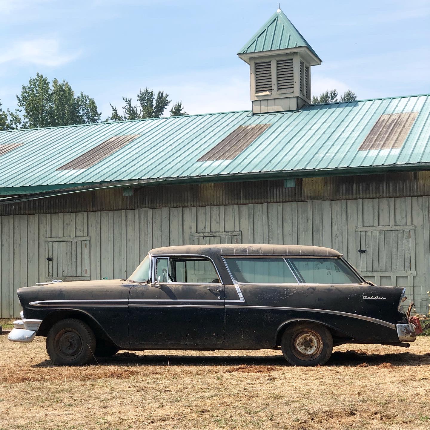 Cool thread. Here is my 56 Nomad when I pulled it out of the barn. I had been chasing this car for about ten years, it was never for sale. Sadly the guy passed away, but luckily the widow chose to sell it to me. I had to buy three cars to get it, all tri-five Chevs, but it was well worth it. ironandsteele.com