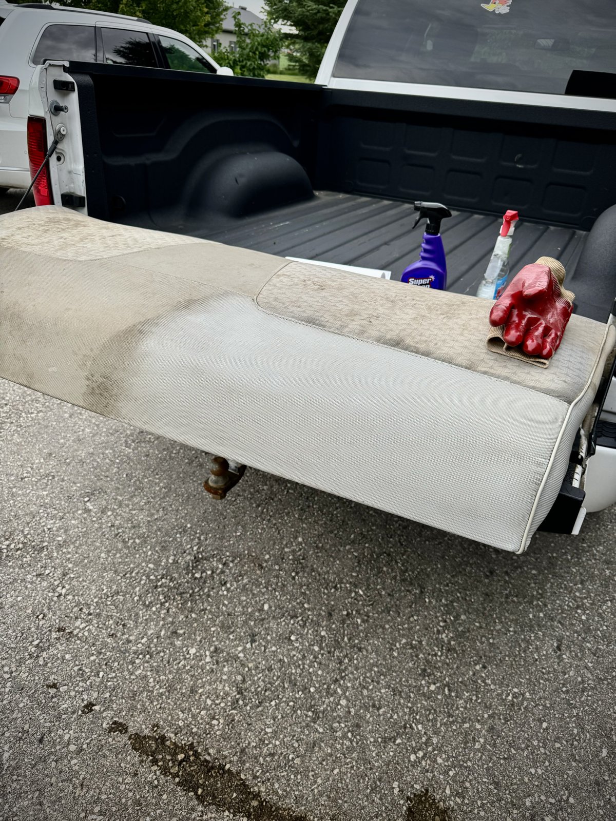 So. I have a ton of used interior pieces.. the rear seat is in great shape. so I hit it hard and is gonna come out clean....Gonna rent a steam cleaner to hit the fabric..... The rear quarter side panels came out mint...