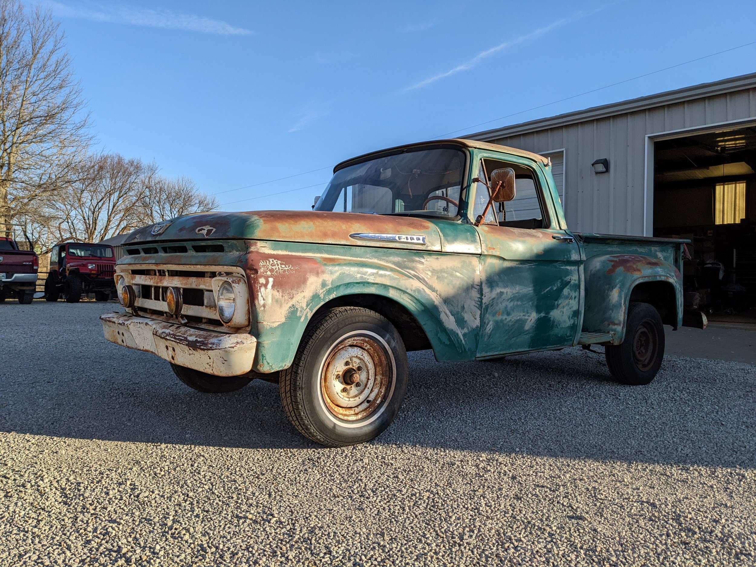 A couple of years ago I picked up a couple of F100s a 61 with a 223 and a 64 with a 292. The 292 was locked up (hood up, no air cleaner for years) and believe it or not it was in worse shape, rust through the roof, drip rails, etc so I sold it to help offset costs on the 61.