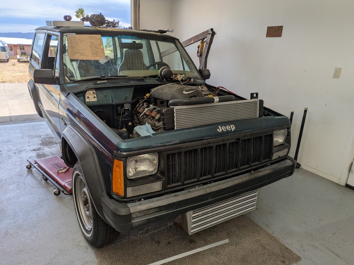 Got the brakes working, the wiring is about done, except for the computer stuff. There's water in the cooling system. Still need to test the fuel system for leaks.