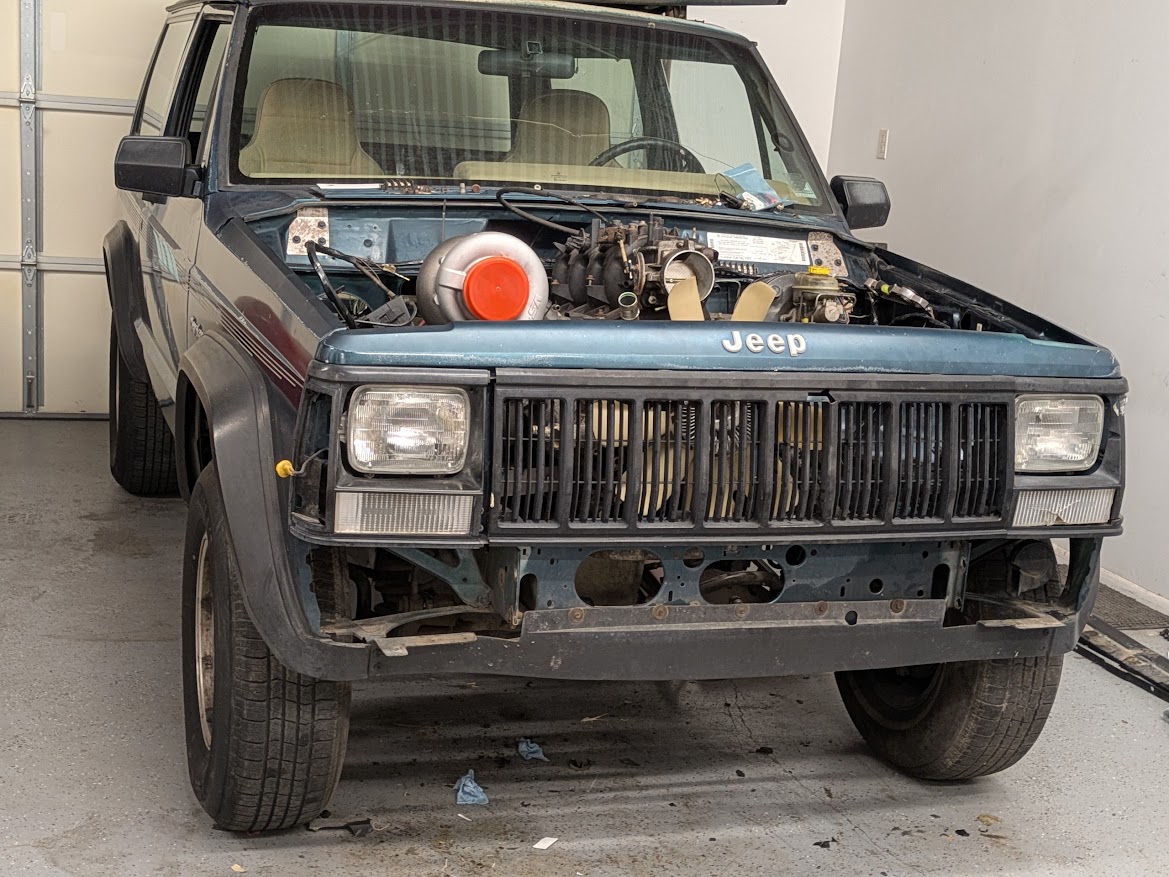 It makes sense to have the crossover at the front if the turbo is going RF of engine bay. Shorter run (heat = energy) and leaves room for the downpipe to go down and back. Jim, have you plugged in numbers (weight+ET = hp needed) yet? You mentioned 3000 lbs and 9s. this says 600 HP will net a 9.96 https://xcceleration.com/et.calculator.html