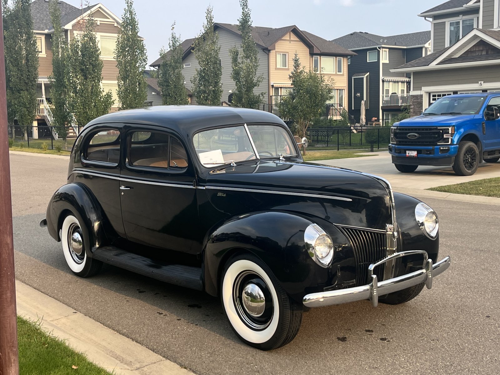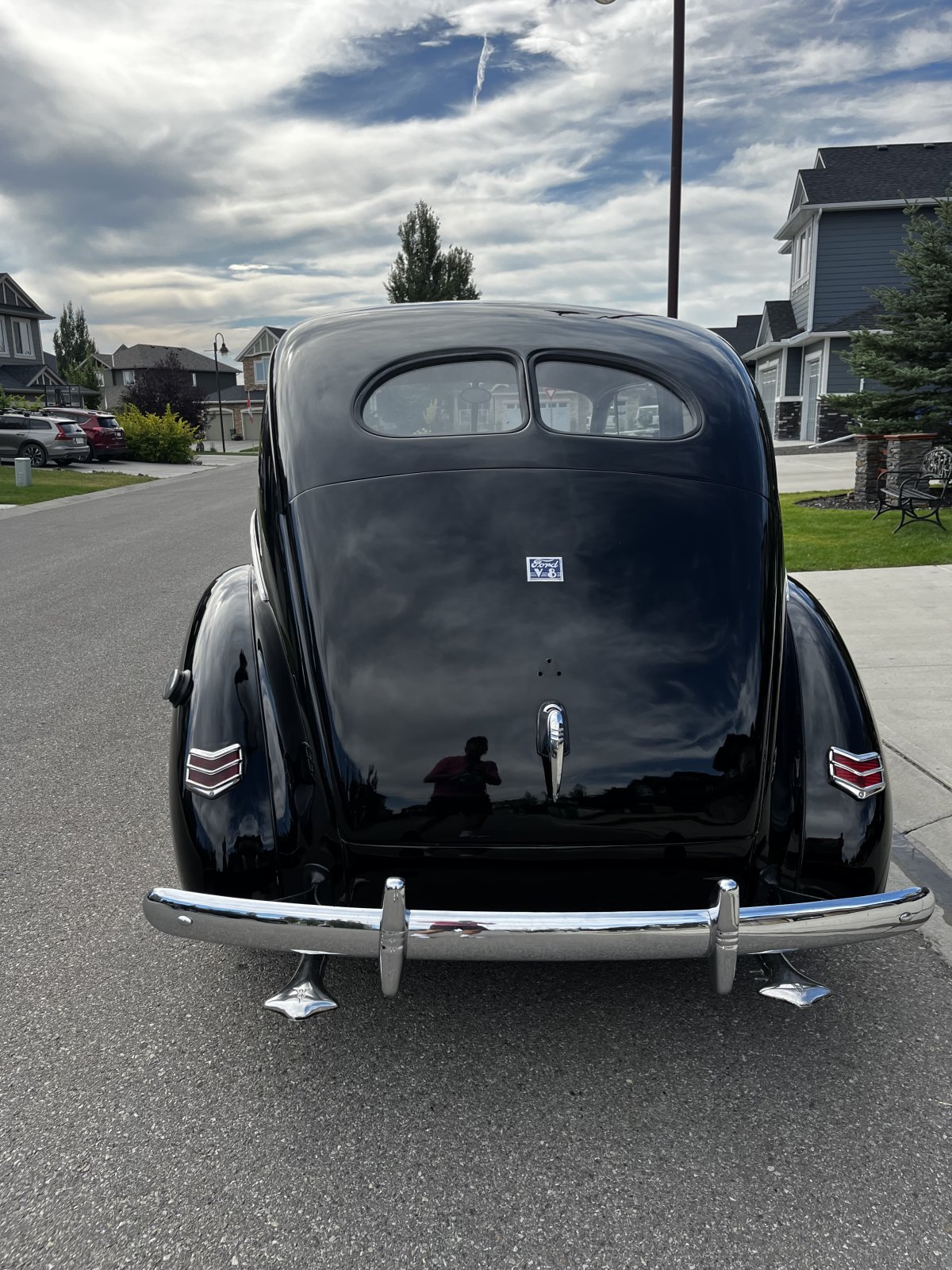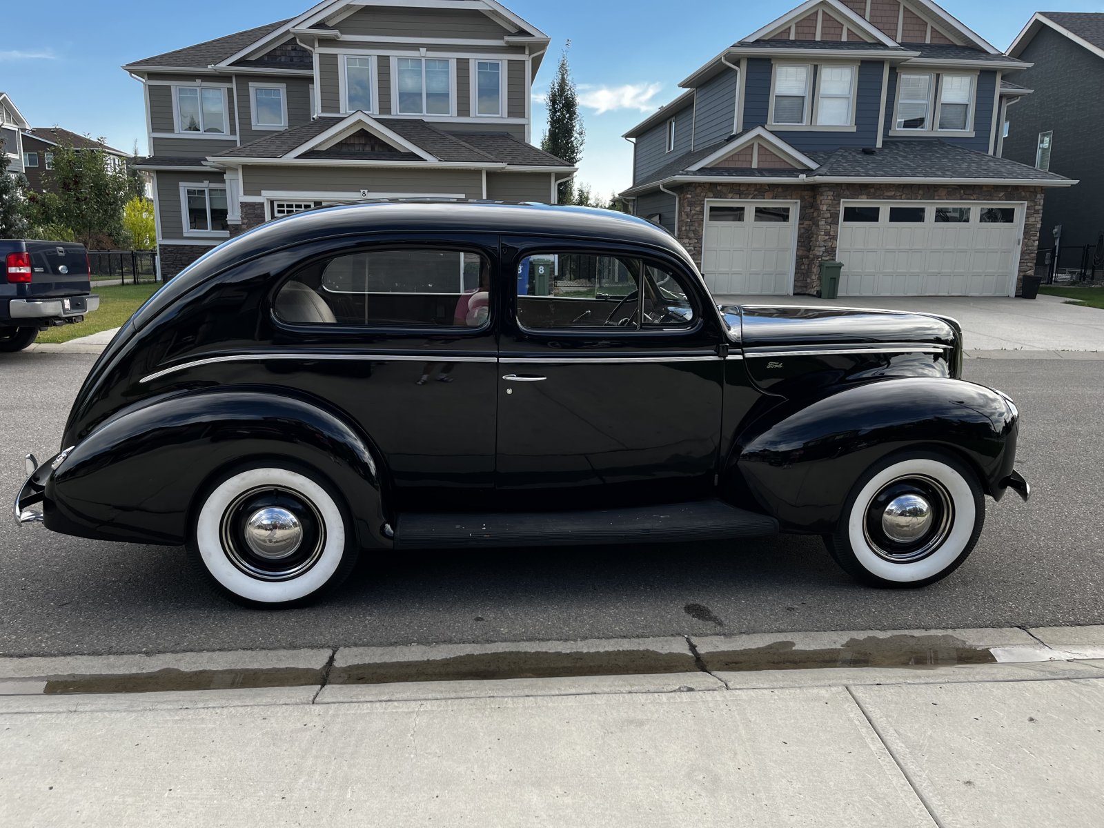 We looked at two 1940 Ford sedans with roomy back seats. One was a two door with an SBC motor.