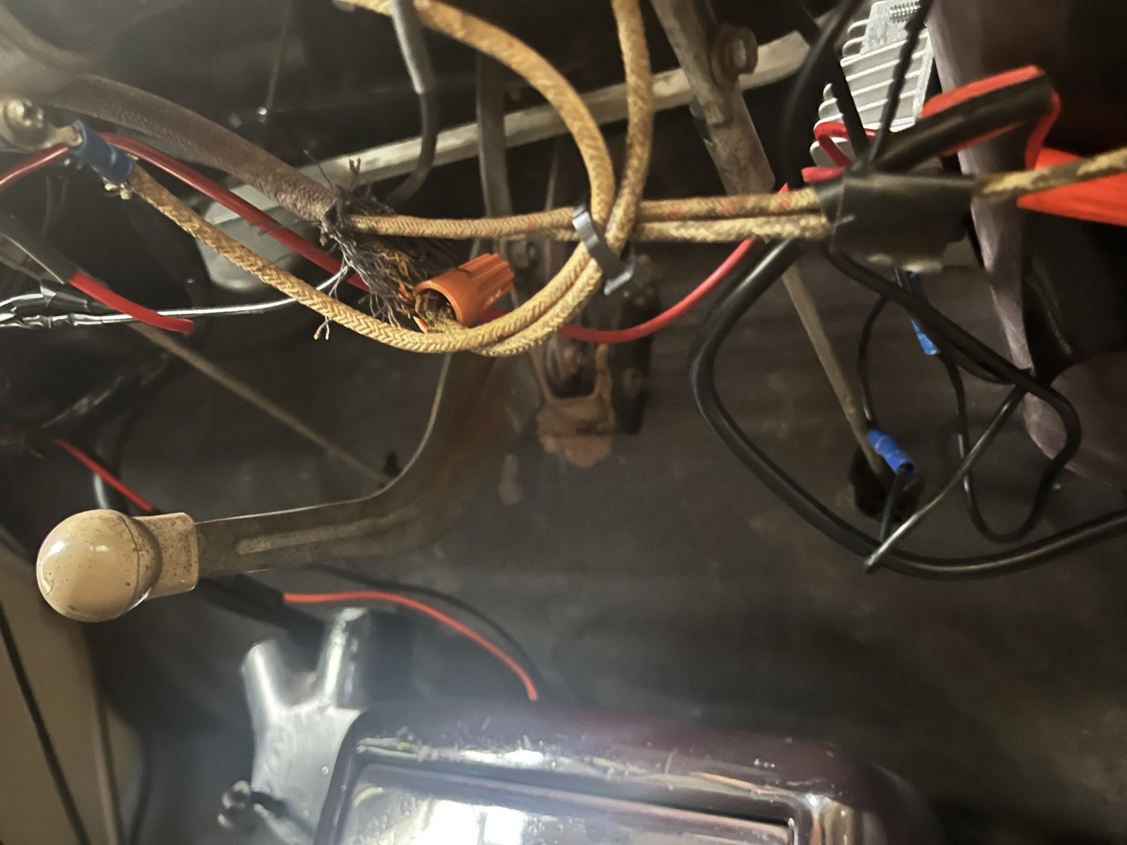 Next up on my list is laying in the harness. I’m running a universal painless harness. Same one I used on my roadster. Having to make some modifications to keep the original ignition switch and starter button. To do this I’m just using the factory switches to control relay.