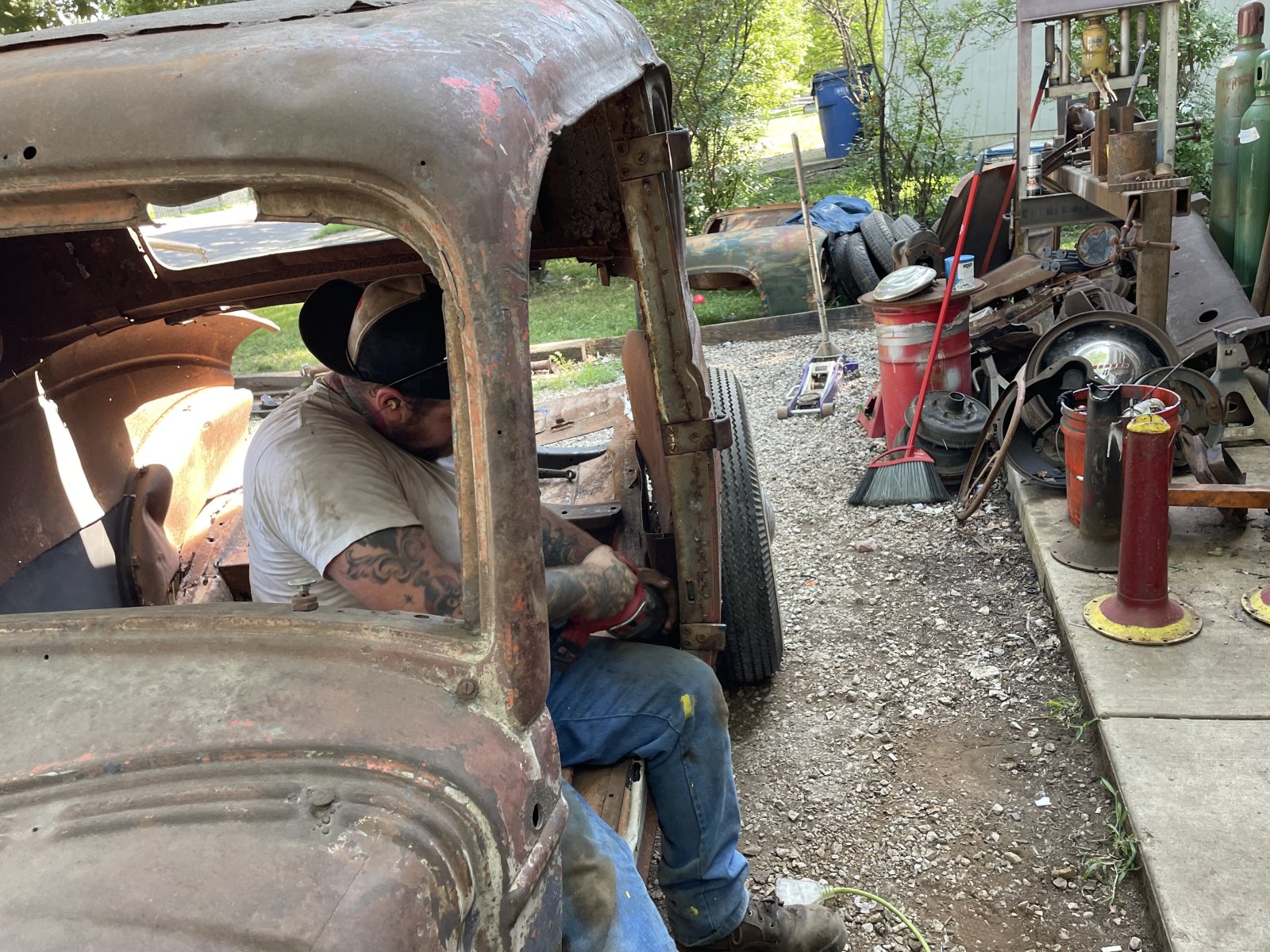 Pretty damn remarkable. What Austin and Jimmy are doing it nothing short of awe inspiring. From the drop everything, sell everything, life getting in the way in every possible manor Austin really persevered and illustrated his answer to “how bad do you want it?” we’ve talked about this car for at least a decade together and a lot of people would have given up even getting the body home with the challenges that decided to crop up. For what’s there is extremely solid. For what’s not there. Well as he showed it ain’t there! A pretty dang good gutted track car it’s got a ton of character and good vibes in person. this is FOUR work days of progress. Major frame repairs and straightening. Jimmy and Austin seem a dream match, Jimmys got the recipe down and Austin is as hard of worker as you’ll find outside of a John Henry poster. I wish I could have been more help but The jump in and cut that shit out and replace it with no hesitation was really fun to watch. new floor, new sill plate rockers, new spliced B pillars new door halves, cut the door off the car and hang it back with hinges that wasn’t even all of one day. This things gonna kick major ass and it’s all 100% old ford powered by his grandpas flathead he’s sure to make the gathering at the roc. Come give him a pat on the back as he crawls out of this Tom fritz painting in Oklahoma and be sure to stay tuned! He’s got some awesomeness in store! really proud of you man.