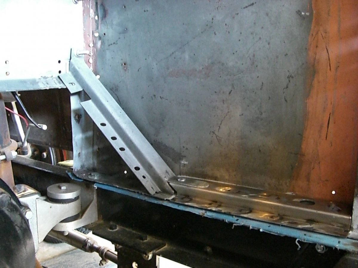 I made the panel from 16-gauge, which I realize is overkill. But I didn’t want it to oilcan. Plus, the body is made from something between 18- and 16-gauge all around. This probably explains why it survived so long in its damp storage environment. Having blown my share of holes practicing on 20-gauge, I knew welding 16-gauge to 16-gauge would be easier for me. (And now, if I decide to store it in the bushes for a few decades, the next owner will have more to work with. :rolleyes:)