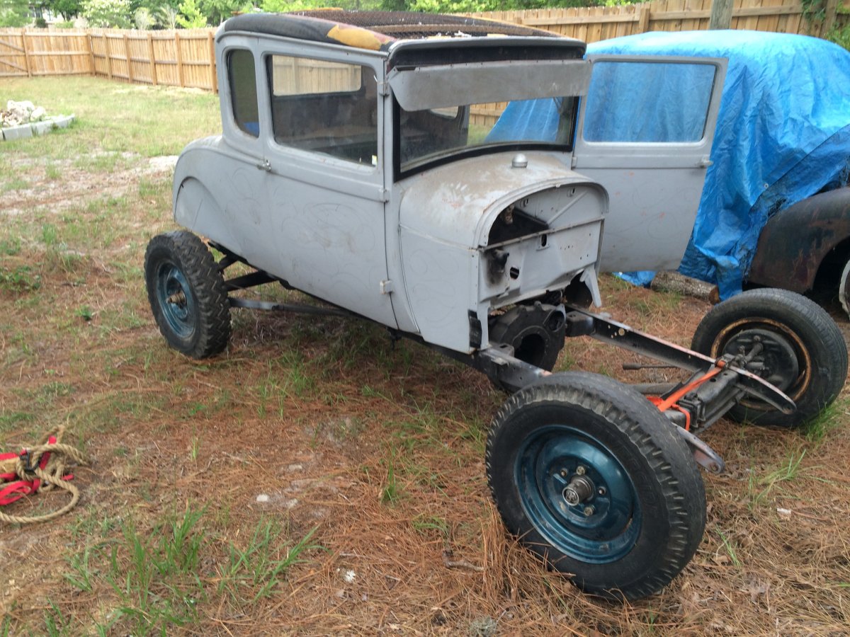 I have been collecting parts for around 10 months or so. I finally came across a body and frame that is in pretty good shape, so now I have enough parts to actually start working on the project. My plan is a traditional style build with the Bishop/Tardel books as a guide. I have an 8BA that needs some work, a 39 Ford sedan as a donor car for the rear banjo, radius rods, toque tube, transmission, steering shaft, and front spindles. It also has an 8BA in it, but I doubt its any good. The guy I bought the car from said it has a 3/4 cam and 4" crank, but that's yet to be confirmed. I've also collected an F1 steering box, F1 front brakes, 1935 wire wheels, Stewart Warner gauges, tach and speedo, F1 cross member and pedals. The 29 Coupe body is in pretty good shape and came with all the fenders, hood, deck lid, grill shell and headlights. I don't plan on running fenders but it's nice to have that option. It also came with a nice leather covered front seat and rumble seat with matching door panels, all of which are usable and have that old hot rod feel to them. So far I have reversed the eye on the rear spring and removed 3 leafs, the spring had 11 when I started. I have also fixed the crease in the left lower cowl panel and firewall. I'm now working my way around replacing old Bondo repairs with metal patch panels. I'll start posting more pics as the work progresses. I hope you enjoy the build. Aaron