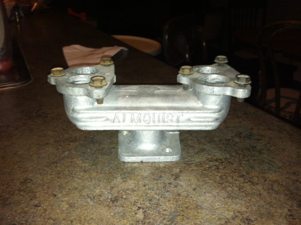 thats cool, the original run of Almquist dual carb adaptors were mispelled, they read "Almqiust" (the U and I were switched) no one has been able to tell me exactly how many were made like that; but they had already been cast and finished before anyone noticed; so they sold them anyway! Ive seen one in person on a guys car, and he didnt even know it. I made his day!