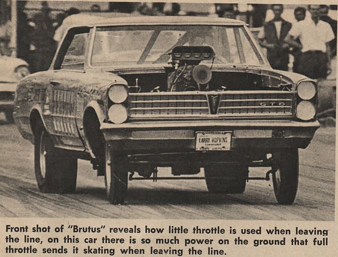 Arnie was a friend of the Gay's out of Texas. He raced for them when he was in the southern states. The '65 GTO was Don's first GTO car. When he got the '66 his brother Roy started driving the '65. I believe it was Roy who got killed in the '65. Brutus was driven for a period of time by "Jungle Jim" before he went out on his own.