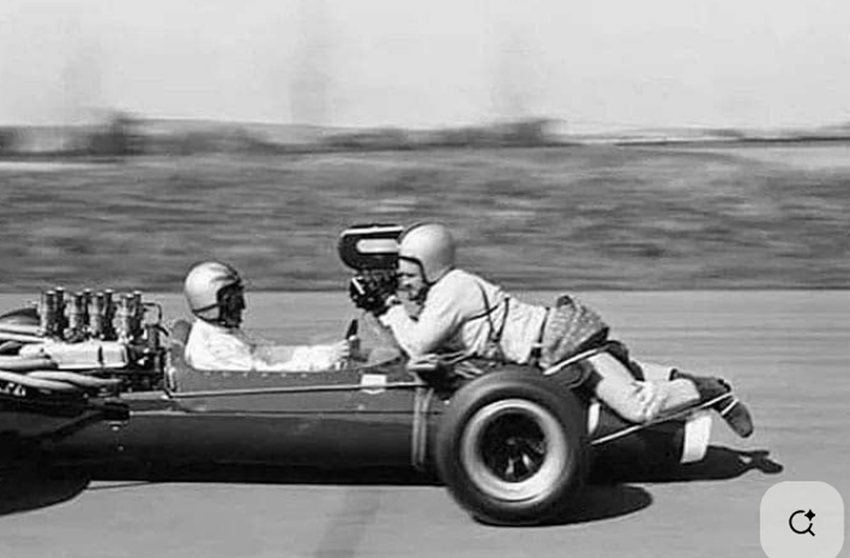 im surprised that the front suspension of the car didnt bottom out due to the weight of the cameramans HUGE brass balls