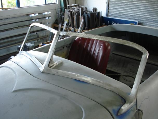 When you use a Hallock, you have to figure out a way to finish off the edge of the cowl above the dash, since the stock dash rail sits above it. You need a custom dash rail, or modified dash from another car, (mine has a '40 Ford dash I modified to step-fit under the cowl edge.)