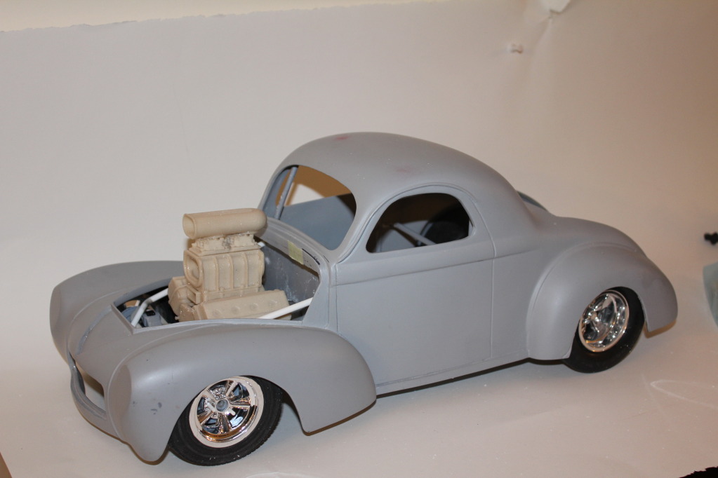 Anson, here's a couple of pictures of my 8th scale Willys coupe. Its a very accurate and strong Madd Fabricator fibreglass body. Its the best and probably only 8th scale Willys body on the market. Mine is sitting on a tube chassis with IFS and is powered by a blown Hemi with a Lenco trans. If you have any questions about this stuff, I check in here every few days.