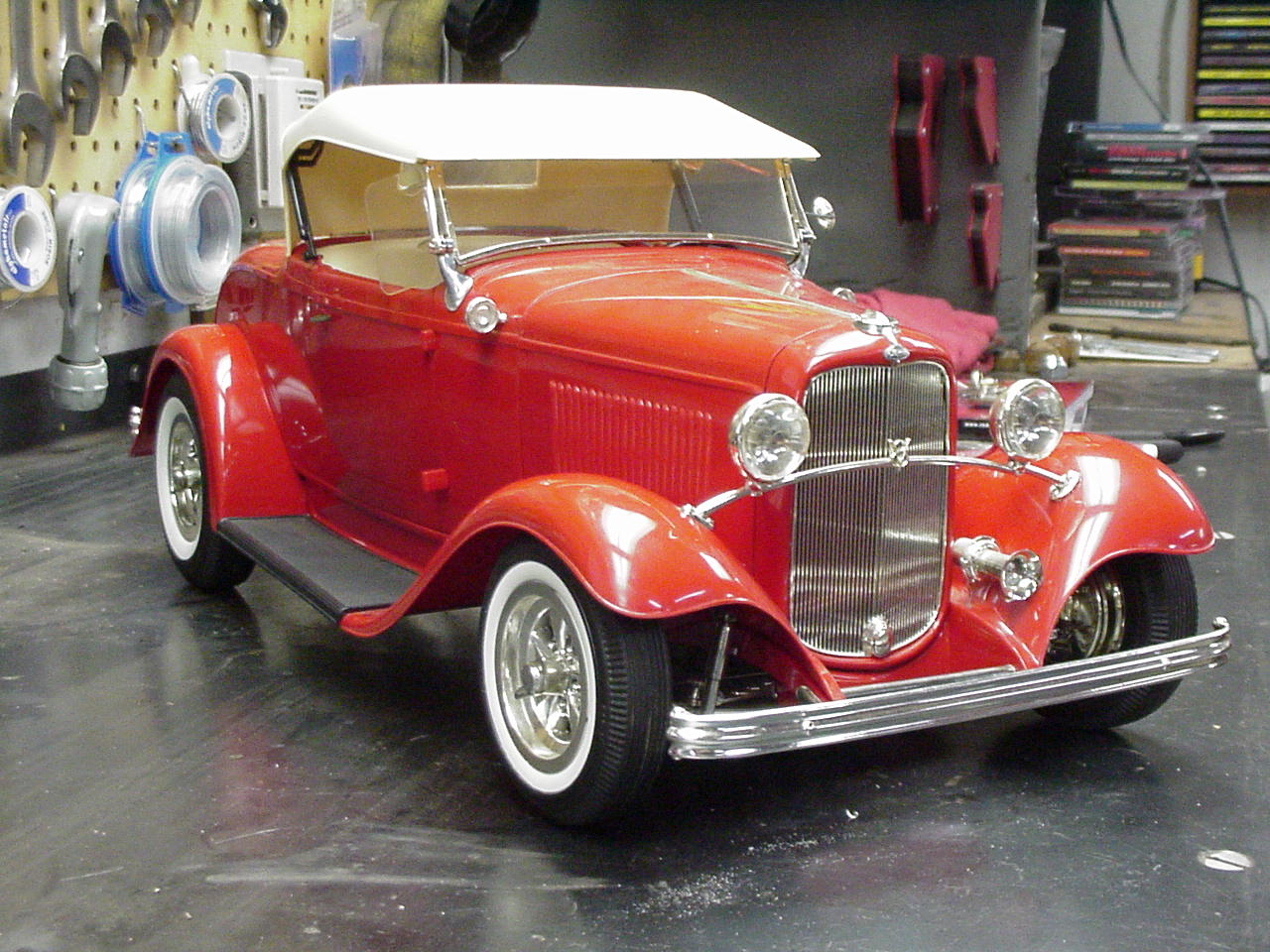 A buddy of mine was cleaning out his brother-inlaws basement after he had passed away, My buddy found this Big Duece wrapped in a dry cleaning bag on a shelf. It was complete but needed a few pieces glued back together. My Buddys wife said her Dad had built it in the early 60's and it was on display on their piano in the living room. Her brother kept it after their father passed. My buddy knew I liked old fords and gave it to me. It was molded in 63 and has working tail and headlights. I've kept it for about ten years now. I built a Big Duece when I was 10 or 11 it was nothing like this one.