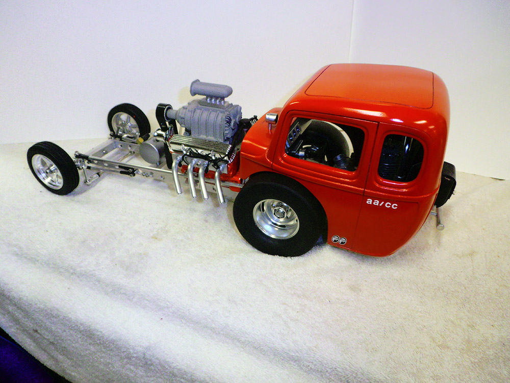 Deuces, I have a bunch of bodies in the works. So far the 33 coupe, 32 pickup, 47 pickup, and the 32 three window are done. As well as a bunch of American graffiti parts, bobbed rear fenders, chopped grill, eight gauge dash, valve covers, rear bumper/Nerf bar, 47 Chevy tail lights man-a-fre manifold, frogmouth air scoops, and I'm working on the headers and reverse steelies. Im also currently having a 32&33 Vicki designed with a 34 Chevy coupe on the way. Other bodies include 32 Tudor, 28-29 Tudor a 34 Tudor and the 33 roadster. And believe it or not there is some talk of a Henry J. God I'm tired just typing all that. Stay tuned.