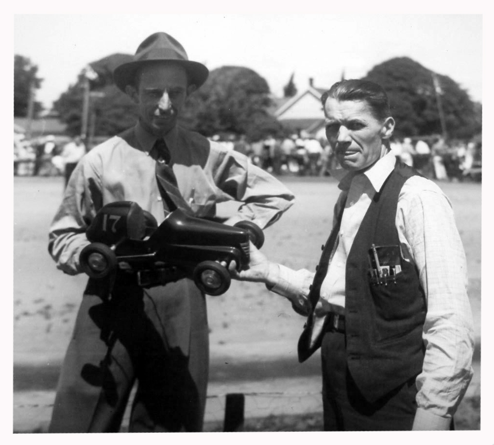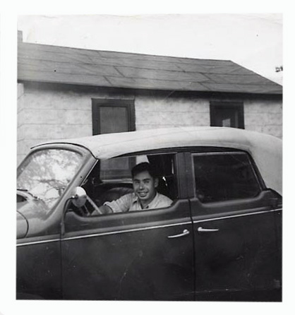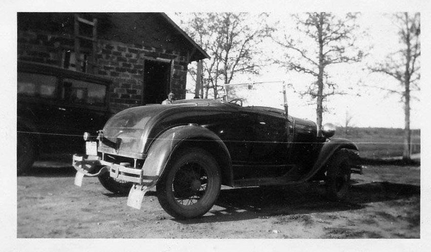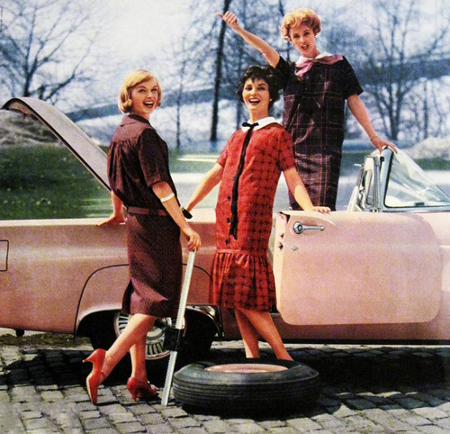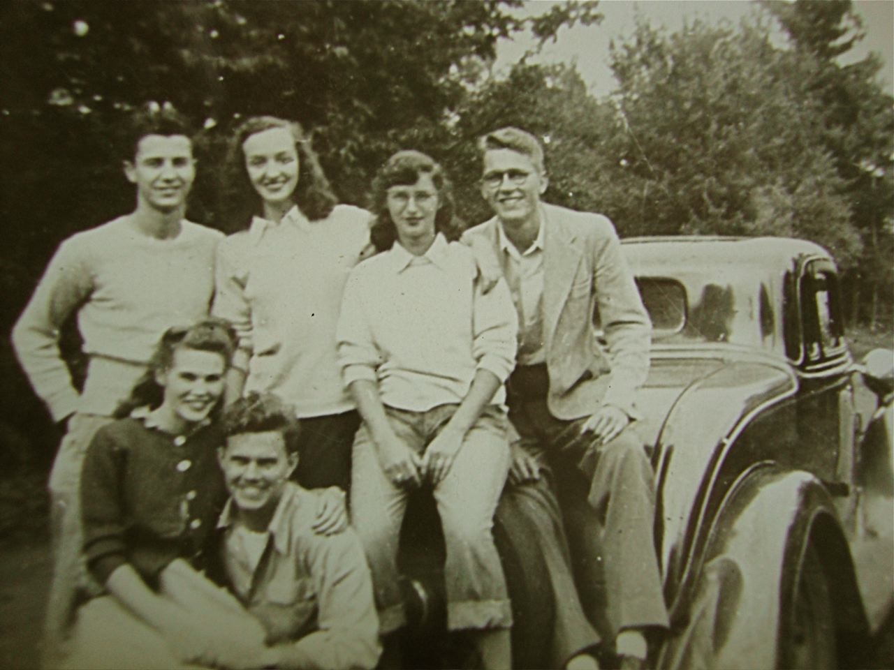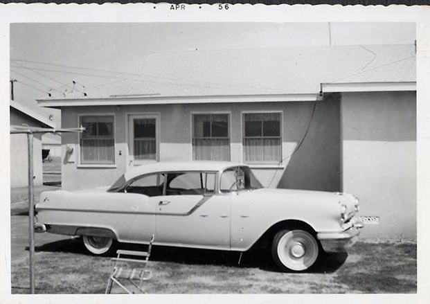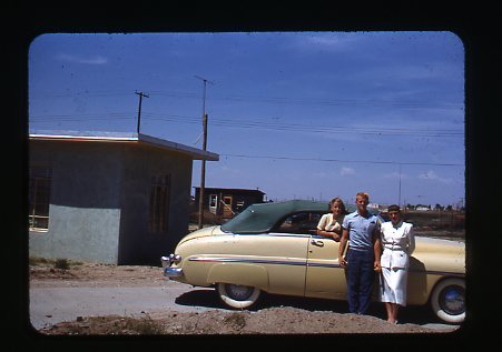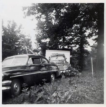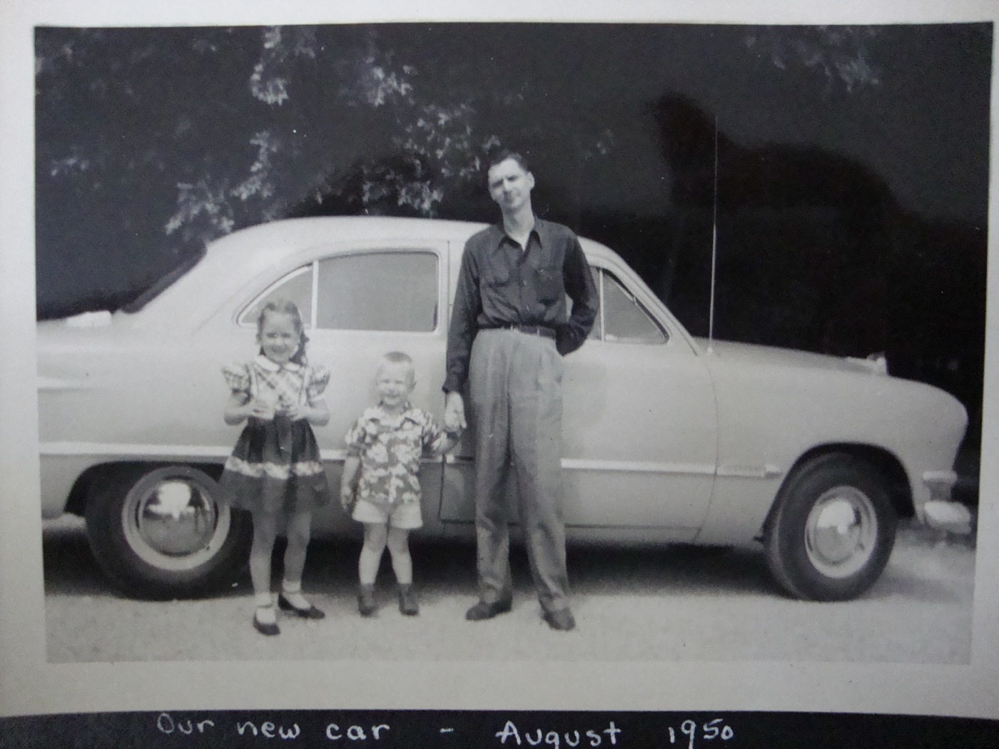 My dad's first new car with my sister and I, and my father in law's Plymouth coupe.