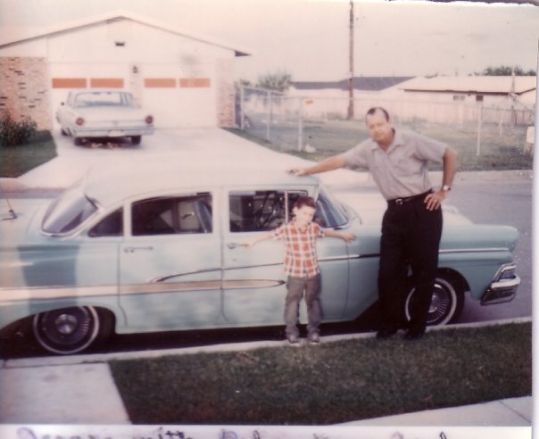 My dad's '58 Ford, '49 Buick and '34 Ford. My Grandfather's '59 Chevy and a pic of him behind the wheel of a new 1910 Maxwell.