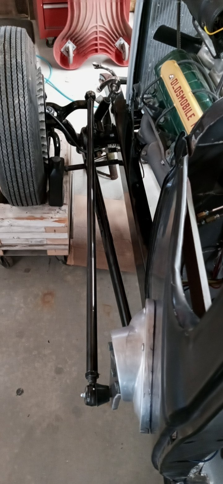 Weather flook today! 55 degrees for the next two days so time to get some things done in comfort. Finished up putting the last two bolts in the wood kit. True to form, the last one had a stripped cage nut! I was not going to remove that entire side to get at it so I worked with it until I got enough of it working that will provide a tight connection. Wasted a couple of bolts getting there but it is behind me now. Had a stupid moment. Ever have those? For some reason I never thought about putting copper crush washers on my front brake hoses . That does not work well. You would think that the wheel cylinder would have come with the washer but not in this case. Picked up some from the local parts store and fixed this issue. Now I have a pretty decent brake pedal. Sure there is still some air in there so we will bleed them off tomorrow if I can convince my young lady to give me a hand. Made up a punch list of outstanding items yet to be completed, wow do I have a lot to do yet! Thought I better mock up my cowl steering so I pulled all of that material out of stock and began that process. I had purchased a blister a long time ago to cover the hole and some of the pitman. I think I will not paint this so I am going to sand it down in stages and polish it. For the moment, I mocked it up to determine where to drill the 8 1/4 inch holes to attach it to the cowl. Had a little interference with hitting the blister when turning full left so I fabbed up an 1/8 inch spacer to move the pitman arm out just enough to clear the casting. I had placed the drag link on the outside of the pitman arm but it looks funky to me since it is not in alignment with the bone below it although it is parallel to the ground..So, I reversed the pitman arm and put the drag link on the inside which looks good but may have some interference when turning left with the zert fitting touching the cowl. Easy fix would be to remove the zert or add a larger or thicker spacer to the arm. Jury is out on that one. I will sleep on that. Was not happy with the straight look of the pitman arm so I carved a bit off on each side to thin it out. That takes a bit of the ugly away from it. After messing around with this for most of the afternoon I decided to reinstall the exhaust on the drivers side. I had removed it to get to most of the brake fittings prior to bleeding the brakes. That is enough for today. Going for a walk in the sun, Doc says it is good for the heart!