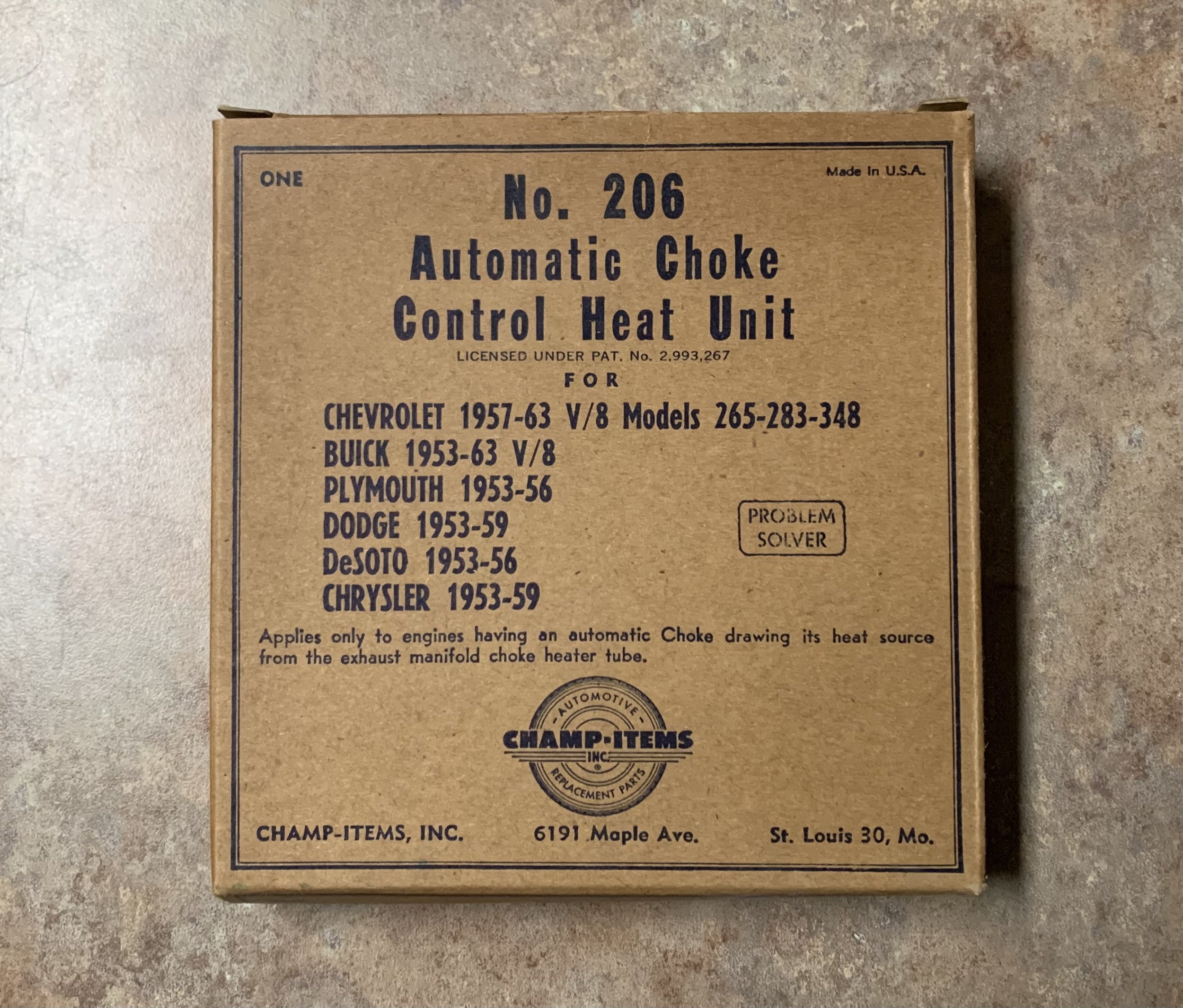 NOS Automatic Choke Control Heat Unit #206. Fits many different cars listed on box. New in box and complete. $12 plus shipping.