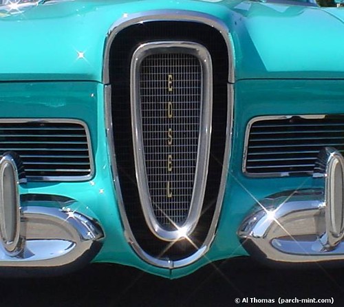 I am drifting off topic here but I read that during the development of the Edsel they looked at the competition’s front ends at a few hundred feet away and they all looked the same because they were all horizontal grills. So to be different Edsel used a vertical grill. I have read the grill was not well received. It was called a toilet seat, a horse collar and even a vagina.:confused::eek: Lots of good reading on this if you google “Edsel grill vagina”. This has got to be my weirdest post on the hamb:cool:...... but you asked....great thread though!