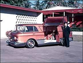 The Deora was built by the Alexander Brothers in Detroit in the mid-'60s. The A Brothers were best known for building customs, but they did some hot rods too. I think the Deora was based in part on the cab-forward Dodge pickup of the period, but the windshield is actually the lift gate from a '60 Ford station wagon.