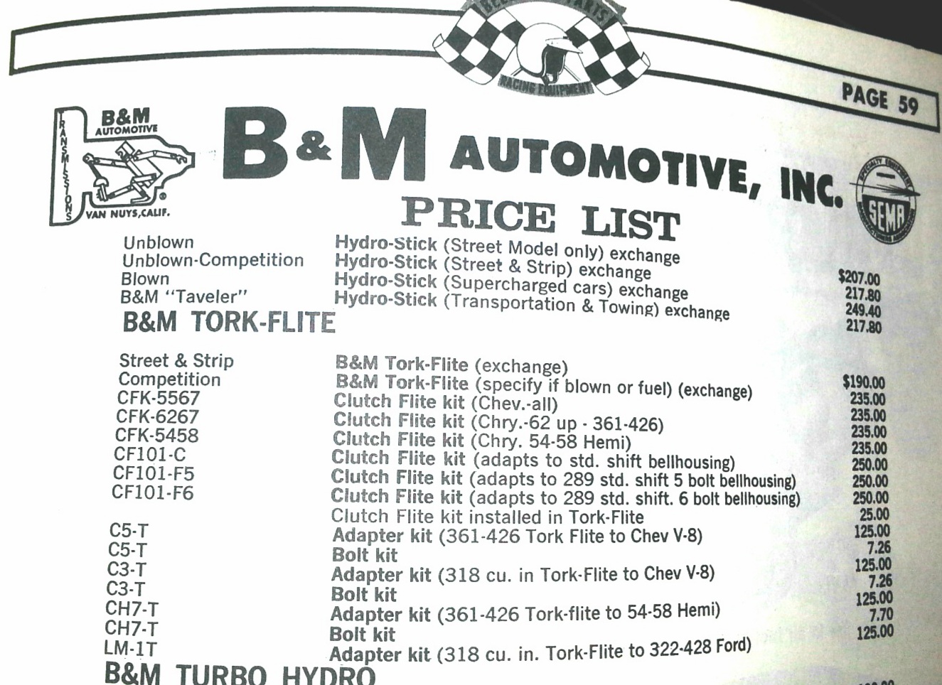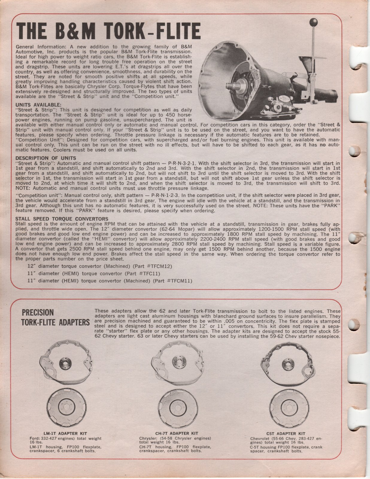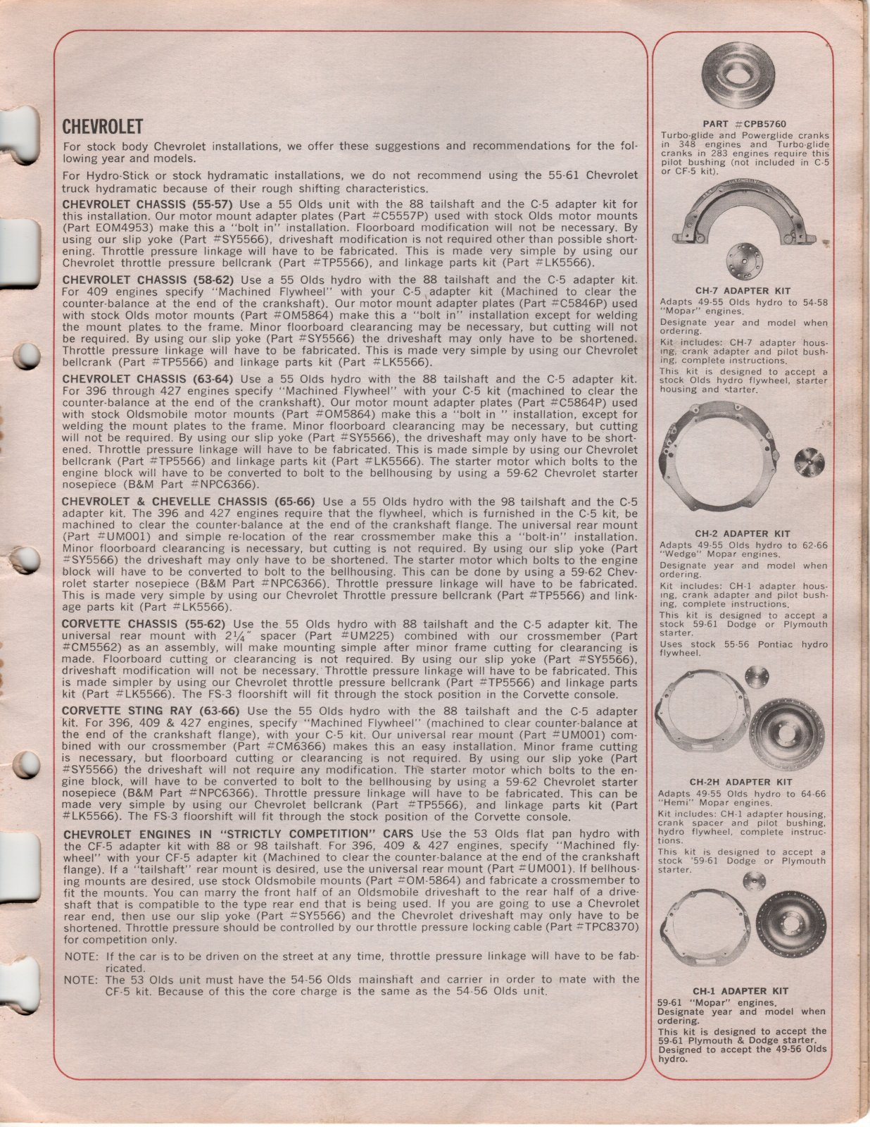 1. A buddy of mine has an old B&M adapter. He's looking to find out what it fits. I have a book with listings, but only for Hydro adapters. His looks to be for a Torqflight. Part number is CF-2. Thanks, Gene. P.S. it is going to be for sale, but he doesn't have any of the hardware.