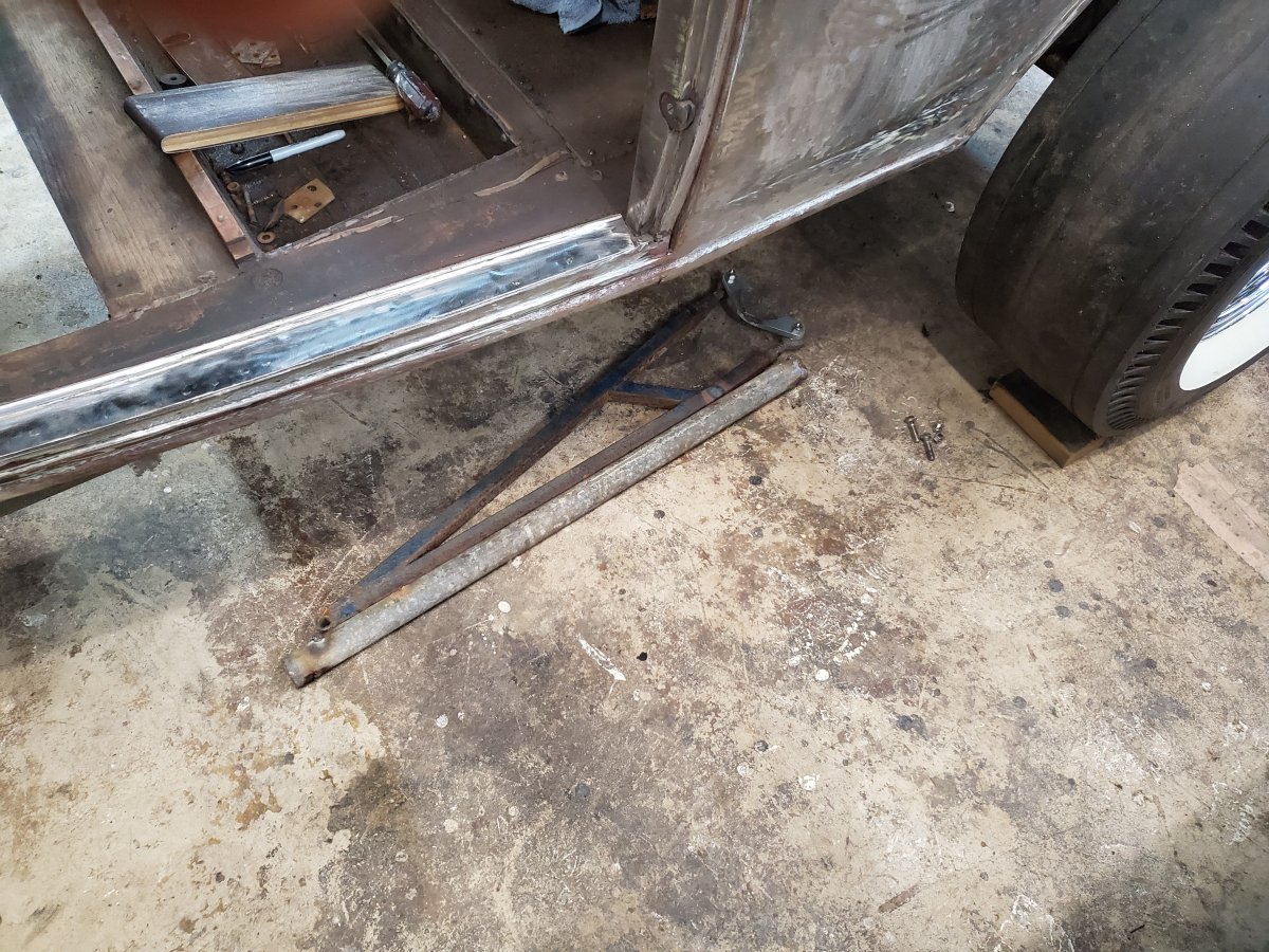 I have the lower half (4 pieces) of brand new wood custom fitted for the door pillars, but not the upper half. Brent will send me these two pieces later. So obviously I could not hang my doors. When the new wood is installed, I'll finally get to cut my firewall, installing from the inside and will weld it in.