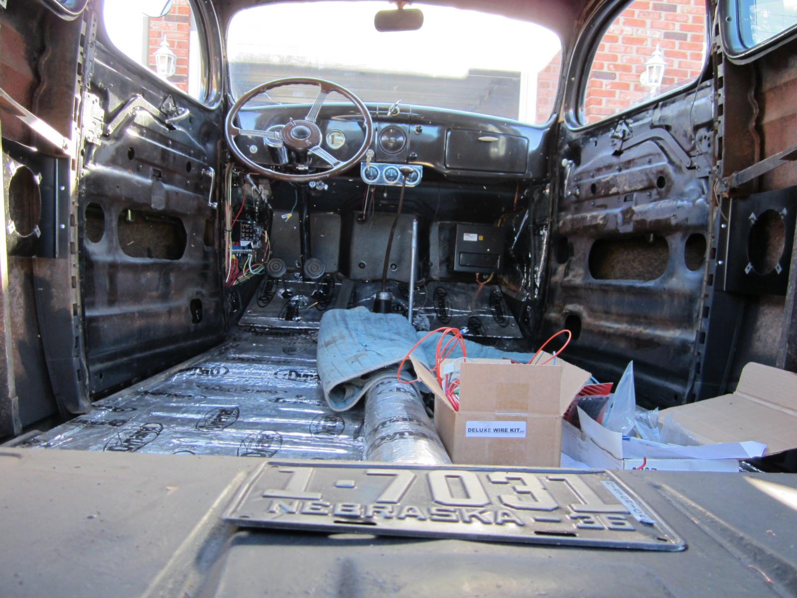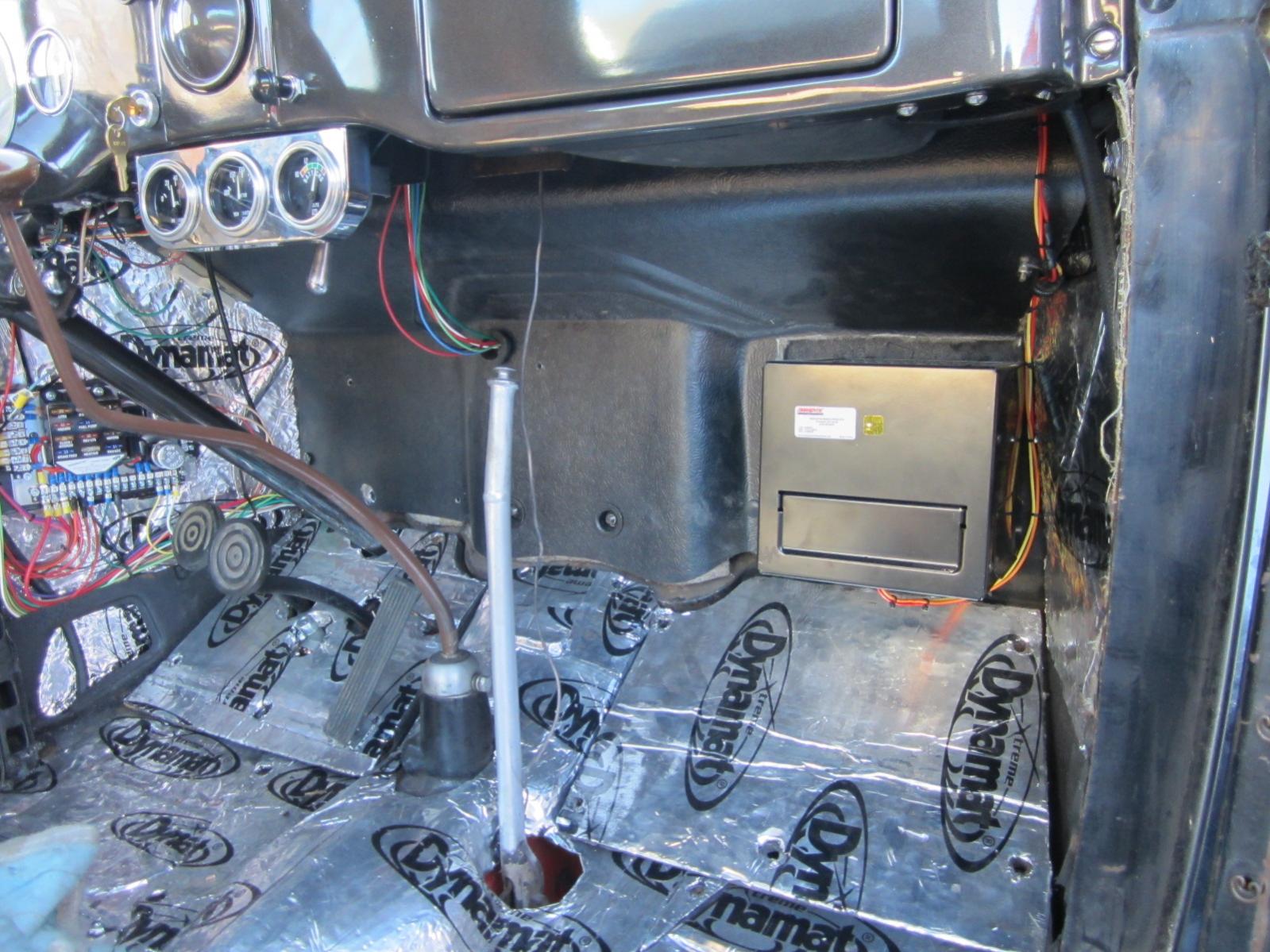 Painted the firewall. Gutted all the wiring and started over with a whole new kit from Rich Fox at Affordable street rods, new Moroso wires, coil, cap, points, 1 wire Alt. and a few upgrades including Dyna-Mat, heater, new elec. gauges (plus still retained the stock originals in dash) battery shut off switch, Mighty wiper, Cal-Custom valve covers and air cleaner, Edlebrock 500 carb on a Edlebrock EPS intake, and had the exhaust manifolds ceramic coated dark grey, and most important added a fresh new fire extinguisher.