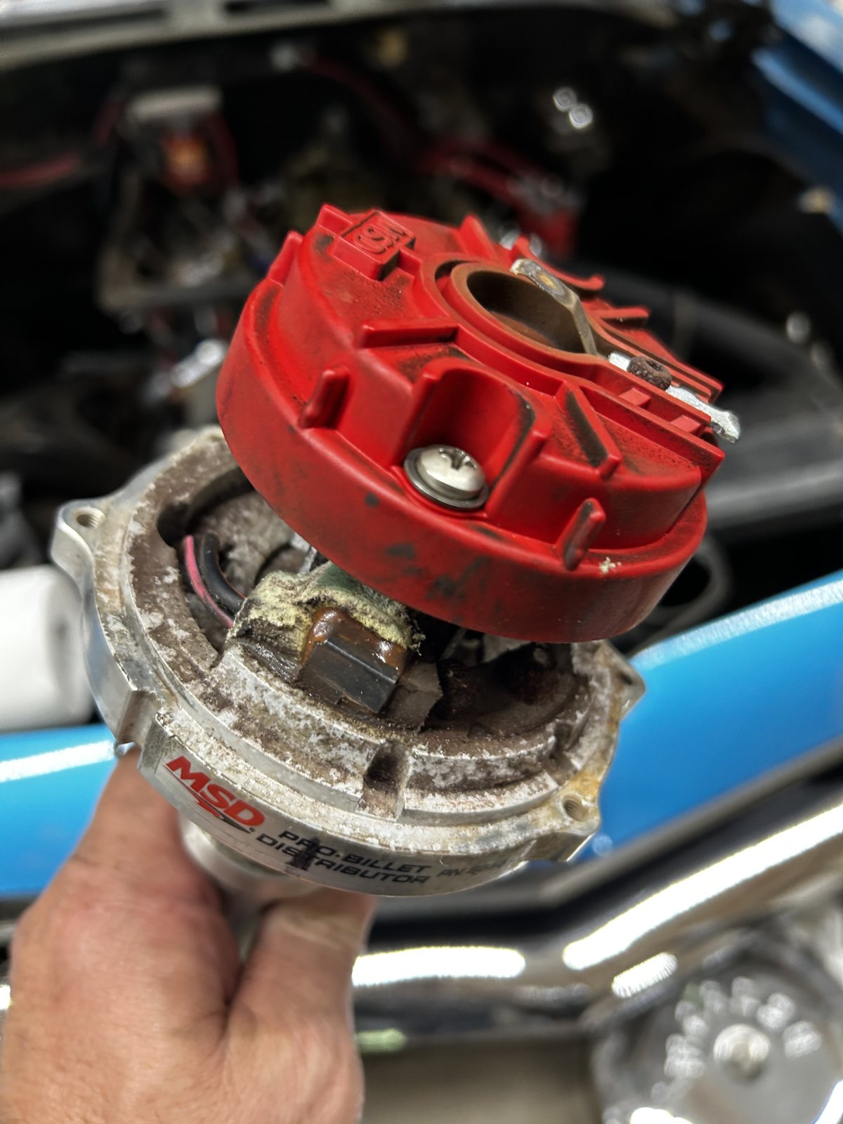 Well, pretty sure I found why it started running like crap recently. Not sure I have ever seen a distributor look this bad when I took the cap off. And, I have never run a brass gear before, but this one is pretty much done… Looking forward to how it runs when I get this all freshened up.
