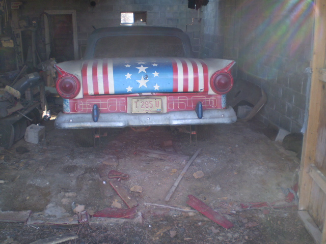 ***Originally Posted by rustyfords Nice. That paint is just so damn horrible that it's cool by default. I wouldn't touch it other than cleaning it up and maybe replacing the wheels with some that aren't so rusty. If you restored it and put a normal paint job on it, it would just be another old car. Leave it like this and you've got something that people will walk across a parking lot to grin at and think about the old days. It reminds me of some of the crazier stuff I saw the teenagers driving when I was a little guy, and it therefore takes me back in my mind. And that's a cool power for a car to have.*** I agree. There was a 58 Corvette here in the early 70s that was painted red, white and blue, stars and stripes. It sat out in his front yard and even tho that was 40 years ago, I think about that car every time I drive by that house.