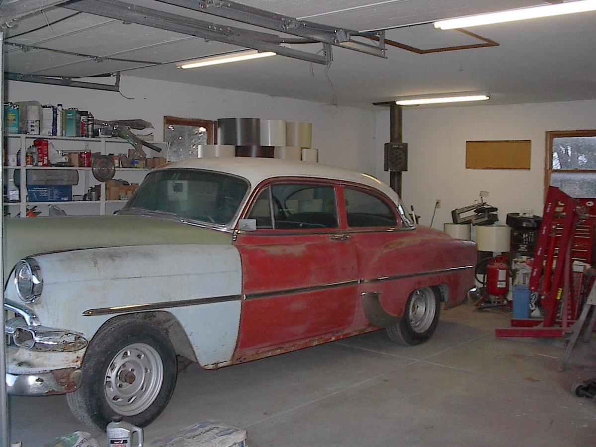 Before, as found, still in the barn After shots, hood has been added (not painted when this picture was taken) and interior trimming to go. That is paint, not primer. Work done in my 16 x 22 one car garage. Canuck