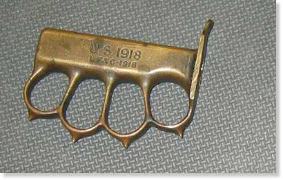 just go to an army/navy surplus shop and get a set of brass knuckles that're labled as a "paper weight".i got a set and hung em up on my wall. ~creepy