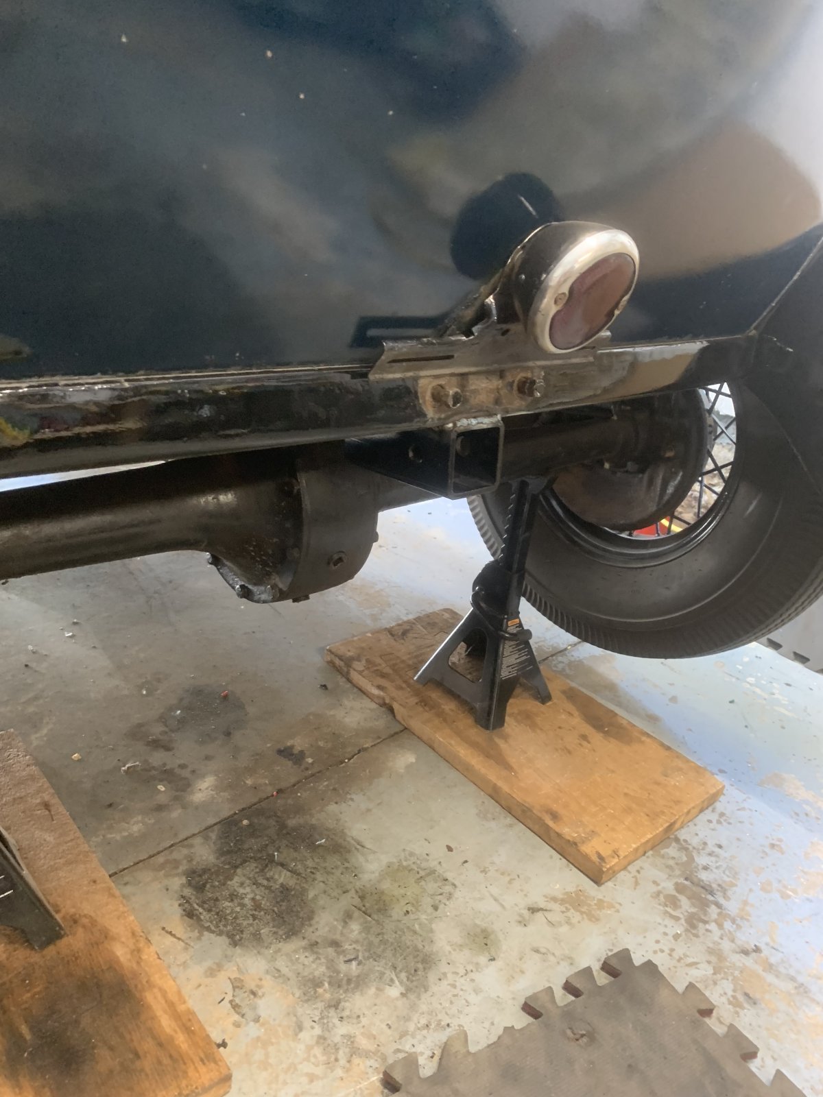 I found a cheap bicycle carrier which got me thinking, how cool would it be to take the hotrod mountain biking? So that’s what I did. I welded a trailer hitch onto the back of the car. It’s covered by the license plate when not in use, and when I am using it I mount the plate on the carrier. It looks cool and works perfectly.