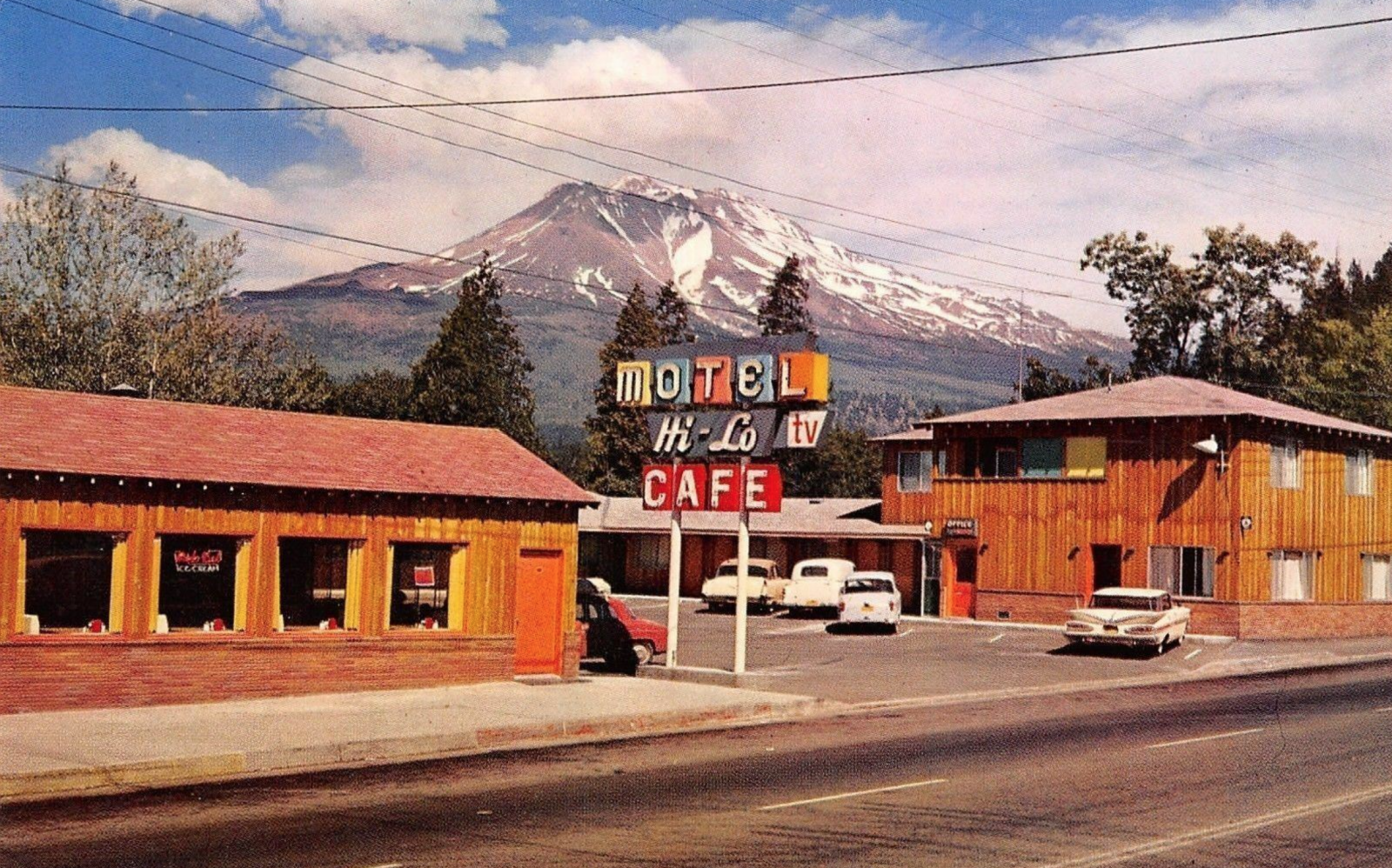The following morning, we stopped in at the cafe for brunch. I had the Mountain Burger, which hit the spot. Just like in the postcard, snow had already fallen on Mt. Shasta.