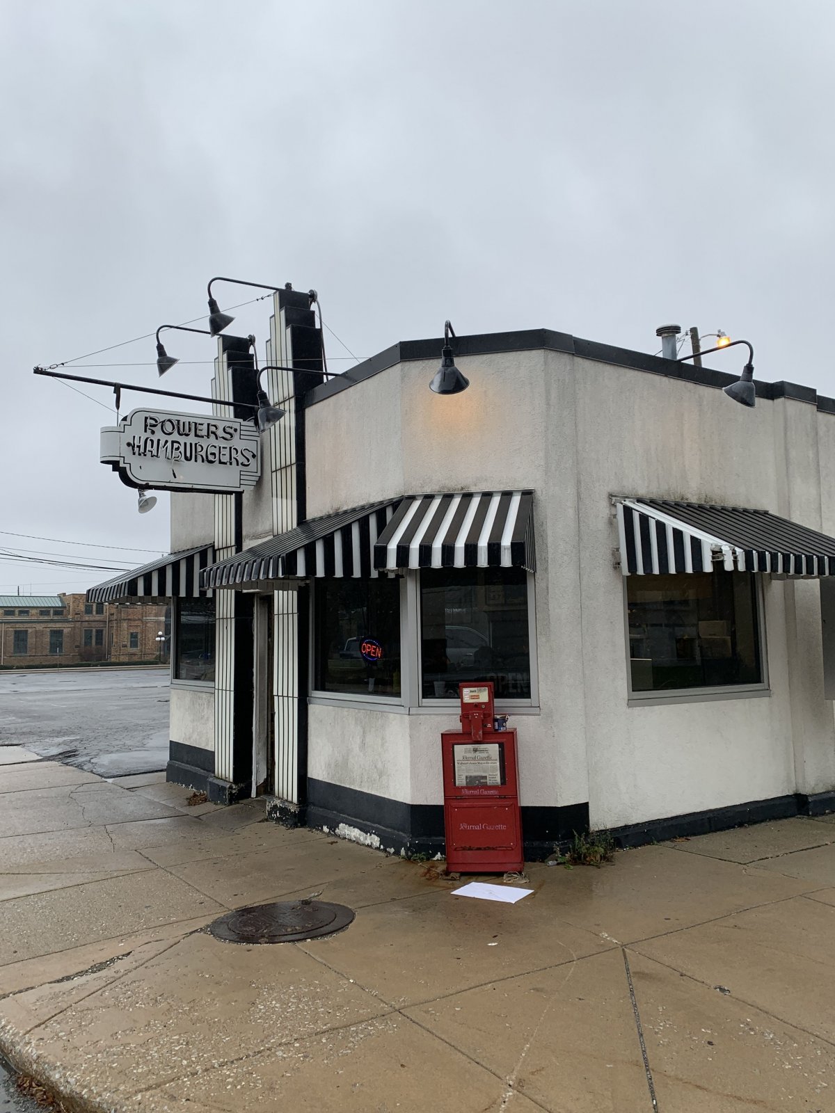 From the moment I walked out of my hotel, it was raining. It rained all morning and into the afternoon. Sometimes it came down in sheets, while other times it was more of a mist. I didn't mind much. I was knocking down miles with a distinct destination in mind: Powers Hamburgers.