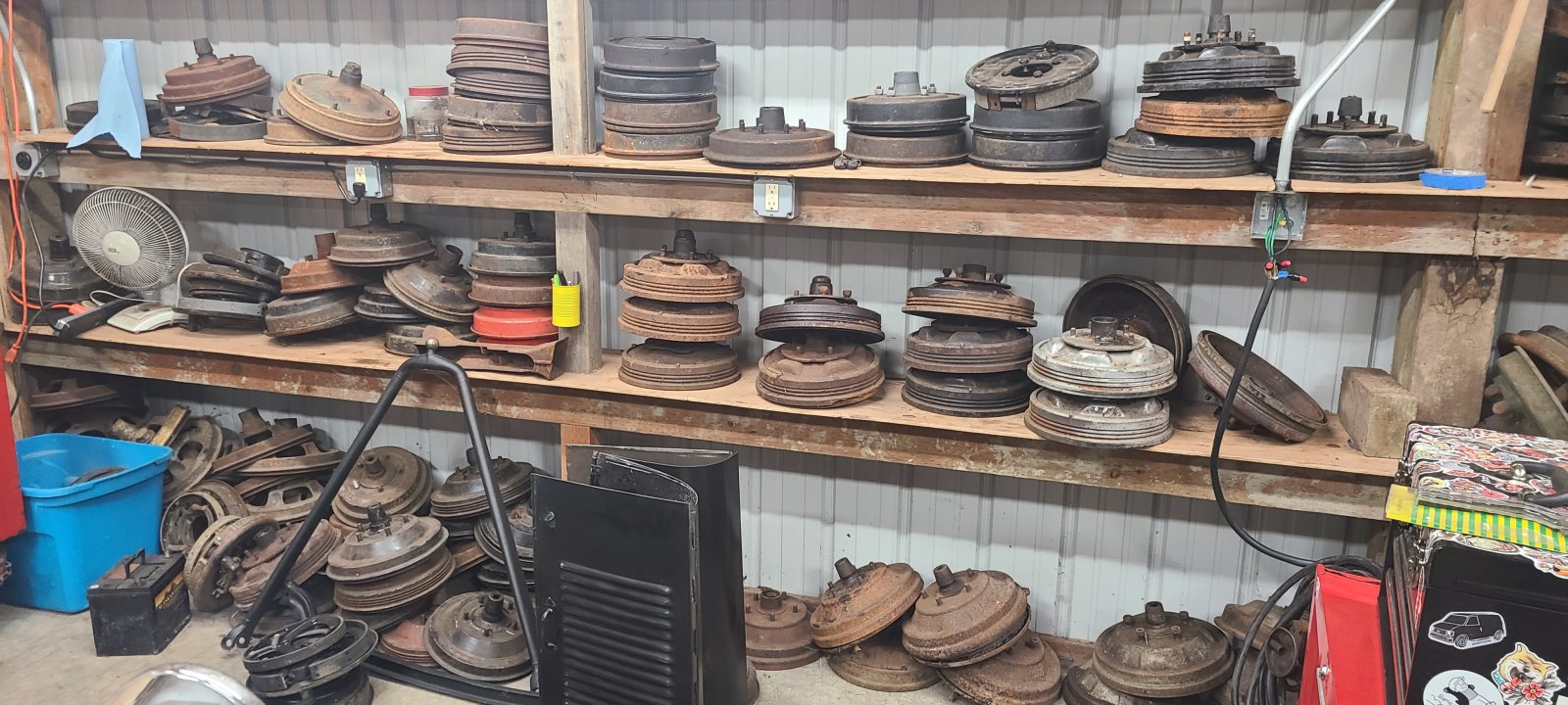 The moment I walked through the door at di Falco Fabrications, I knew it was going to be an important day. David and I had a straightforward plan: make the car a roller. After spending part of the morning organizing my parts pile, I took a trip to @bushwacker 57's place to pick up brake drums, plus a few fun extras.
