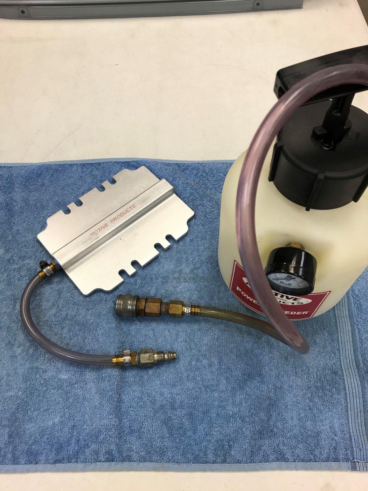I have drilled MC cap & seal ,installed wheel valve stem in cap to pressurize MC to push brake fluid out @ bleeders , also find leaks , If some one asked about valve stem & I did not change out cap , I said this is how I fill my Tires,,