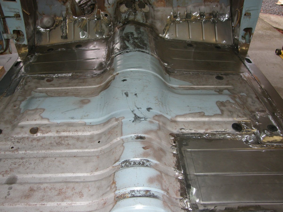 It passed inspection and the state was happy and he didn't have to scrap a good running car for a rusted out trunk floor. Not a concours repair ,but it worked.