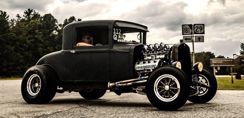 Here's my 31 Plymouth coupe. 392 punched out to 468, 6 speed. At the gas station with Racer X's nitro coupe