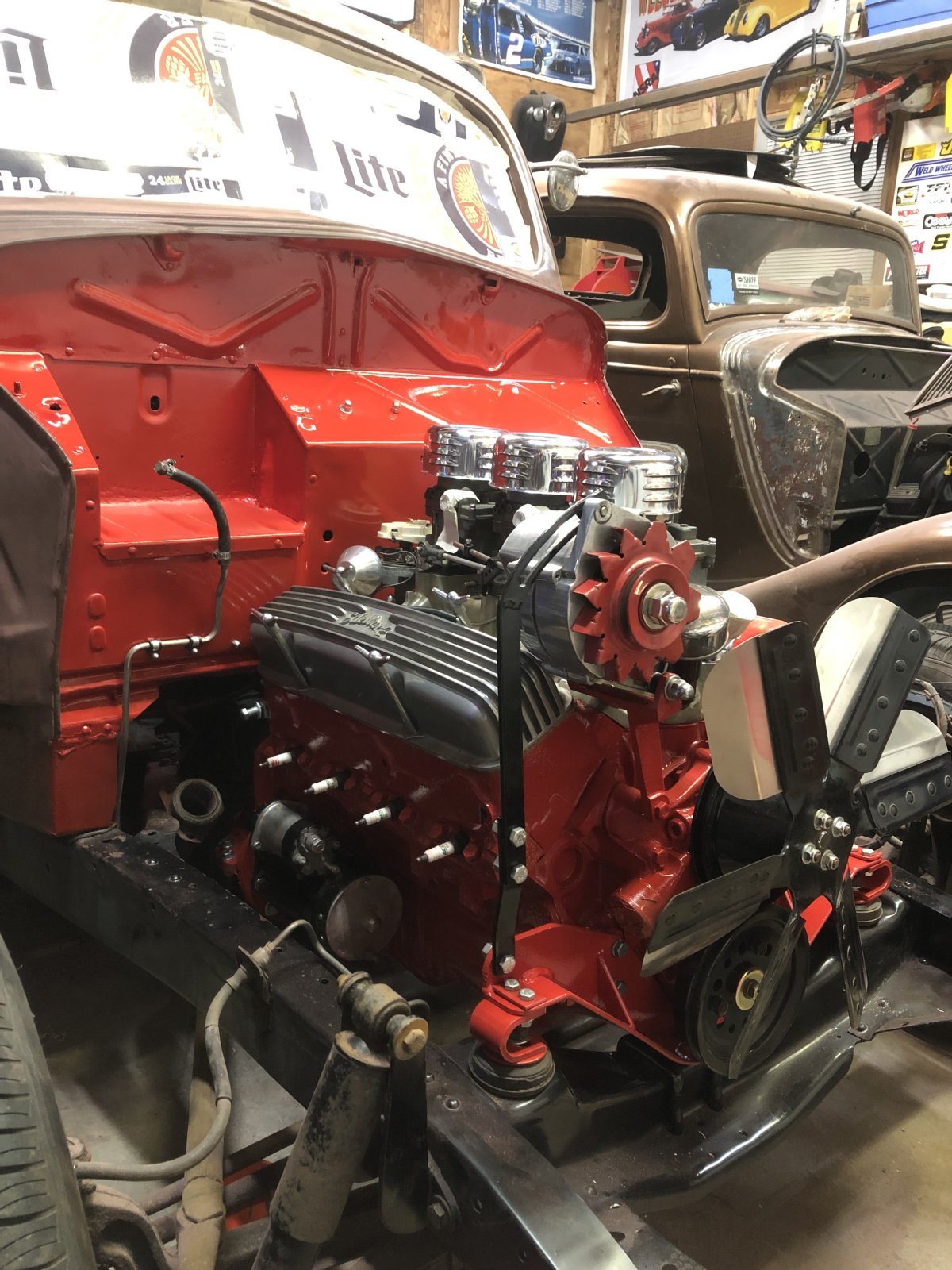 This will be for a ‘36 PU, originally it had a 265 with the Hurst mount and the U shaped spacer.