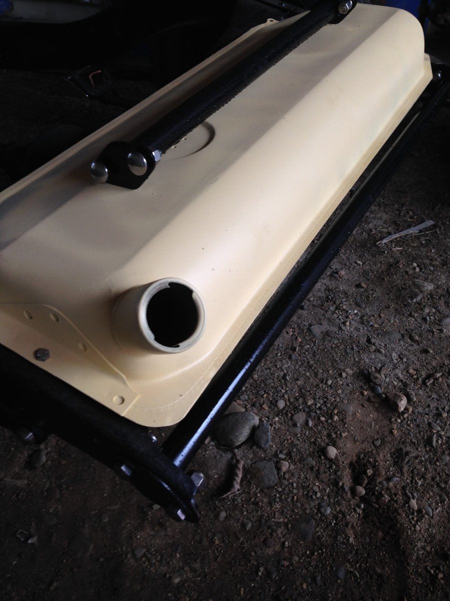 Spreader bars done today. Trimmed and polished hex head bolts for the rear and stainless capped swap meet bumper bolts for the front. Just need to make nerd bar brackets and bolt them on.