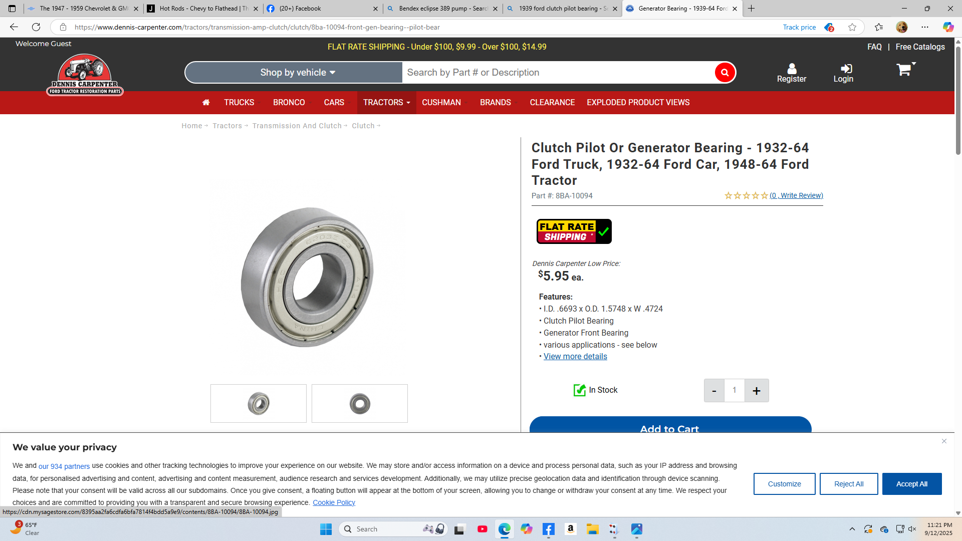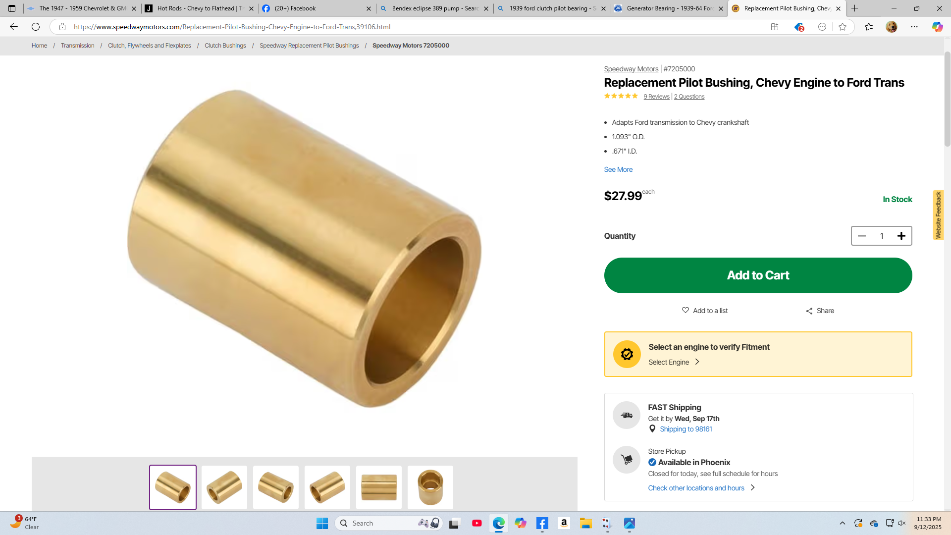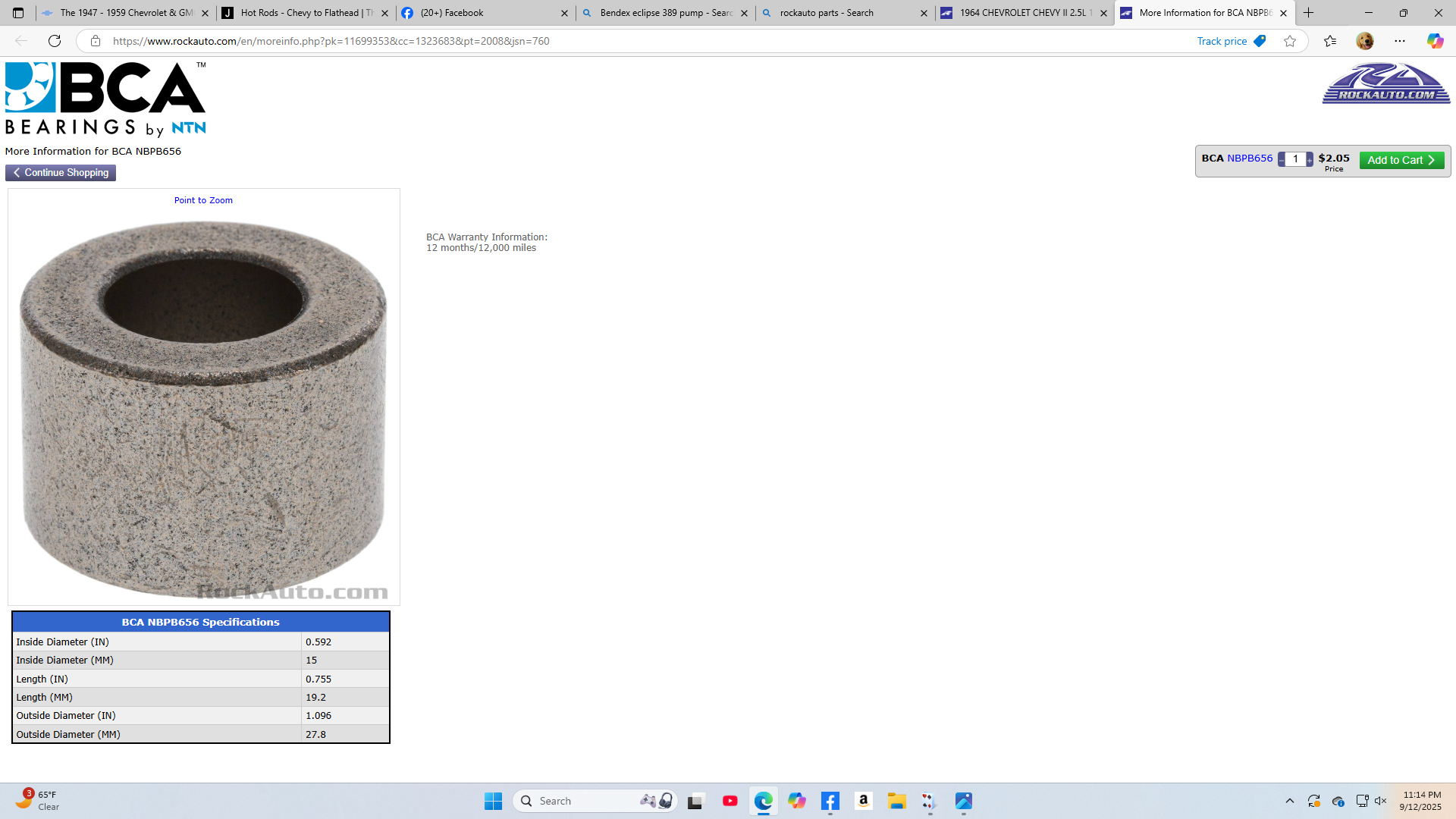 Looking for some Examples of Ford flathead pilot bearings and ( I put in 64) chevy II pilot bearings I came up with these. ID of the Ford pilot bearing is .6693 while the ID of the Chevy II busing is .593. For the price the brash pilot bushing from Speedway isn't a bad deal. I'd like to have a bit more meat on the stub that sticks out past the end of the crank though.