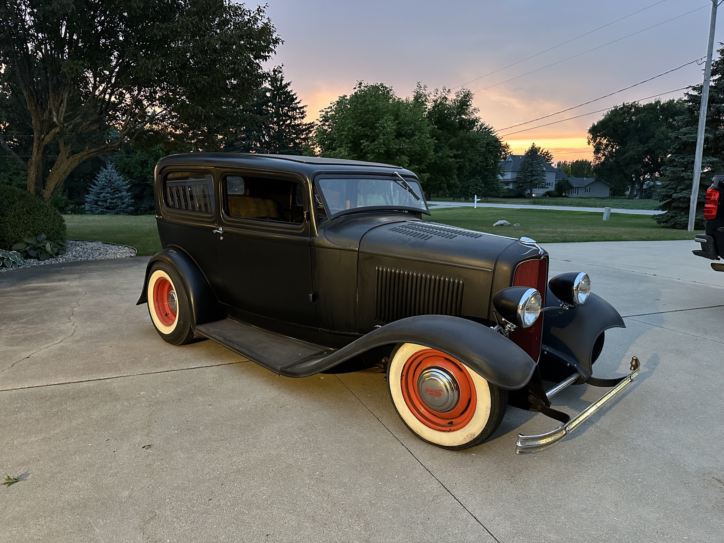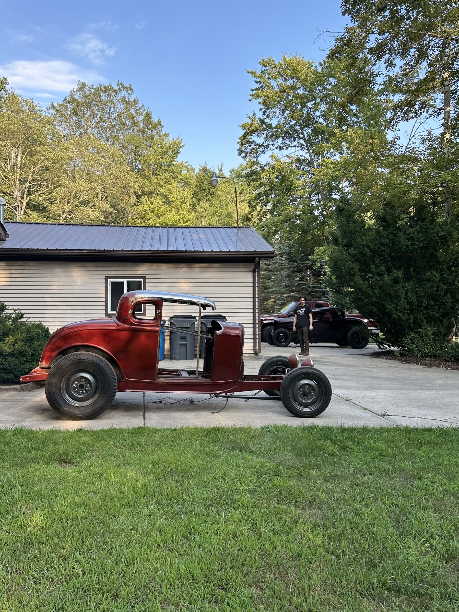 Every 2-4 years I post something and I guess today is the day. Some of you guys remember Fab32 (Frank Burrell) I bought his deuce Tudor after he passed away in 2015. In 2020 I bought the ‘32 five window he’d owned since 1977. I built a new chassis for it and started driving it a little to work out the bugs. Then a buddy on the east coast offered to finish it, so I dropped it off and didn’t see it again for three years. He brought it back a year ago not finished. I made the decision to basically start over. The car needed a lot of work and it deserved to be done right. Colton Leigib, a super talented local hot rodder said he’d chop it and do some metal work it needed. He has a hammered five window and I knew he was the guy for the job. I stopped by yesterday and we cut off the roof then tacked it back on. It looked so good, I really wish Frank could see it. He owned the coupe for 38 years, wanted to chop it, but never pulled the trigger. No turning back now, we cut 5-5.5” out of it with a little wedge. It rules so hard just sitting there. I love it. I’m still driving Frank’s sedan. Hard to believe I’ve owned it for ten years now. In late 2021 Frank’s widow asked my wife and I if we’d be interested in buying the house, shop and property. We did, and it’s really great to now own my mentor’s home, shop, and both of his hot rods. None of which would’ve happened if it weren’t for the HAMB.
