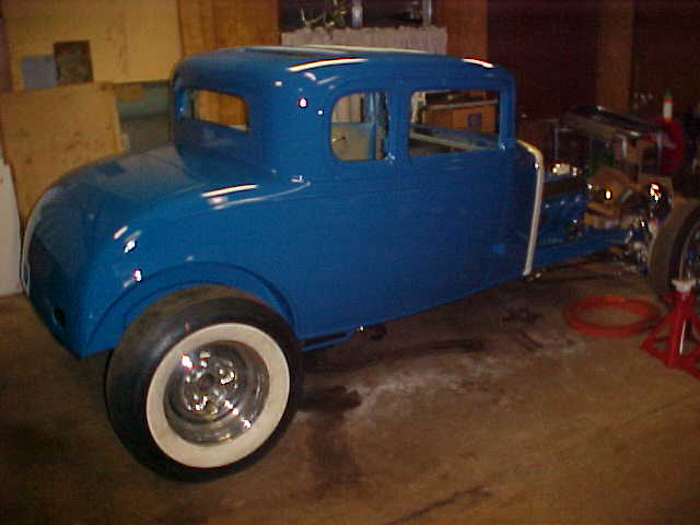 The frame is designed after a model A. It is kicked up 8 inches in the rear and the body is channeled 4 inches. A local rod shop here sells the repoped A rails.