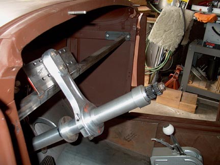 andy,that is a real nice column drop.i see you're using a `40 wheel,column and shifter..with a slot in the drop for the shift tube...that all looks great