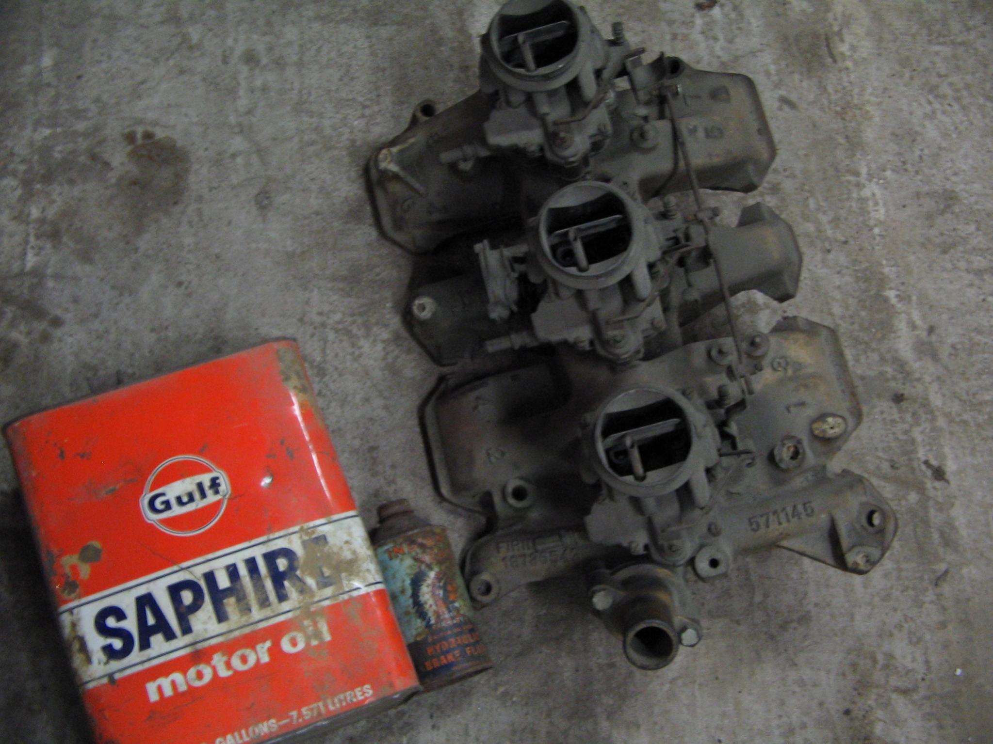 a guy at an auction last summer bought a building full of "stuff". digging around, i noticed a factory tri power setup. a little rough, but complete. went to go find him and another guy found my prize. he offered 10.00, and the guy said it had to be worth more. i offered 20.00 and he said okay. i had to borrow the money from a buddy to get it home. took it home, sat on it for a few weeks, and took it to the next swap meet. didn't do a thing to it, and ended up selling it to the guy i outbid for 200.00. i think it was a mid to late 50's j-2 setup. i think it needed quite a bit of cleaning, but i figured a 10x profit from the guy i outbid, along with the story,was enough to make up the difference!