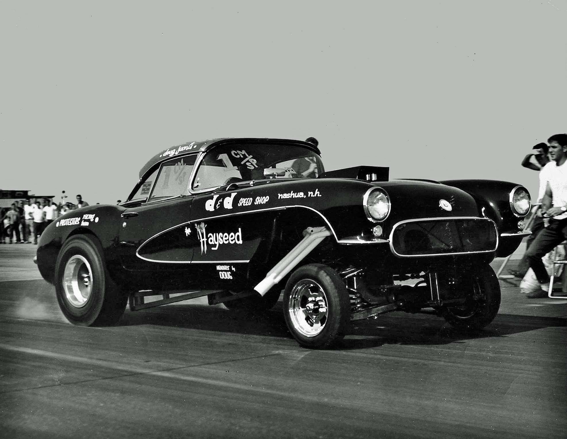 I posted in the Hot Rod sports car thread on this picture with a little change of the picture and the following:"Here is a little clearer picture of this early Vette. Apparently he did not get the memo that cars in the era always ran level and the upstance was an optical illusion as they were leaving the line-how silly of him.". Good looking car that was probably fun to watch.