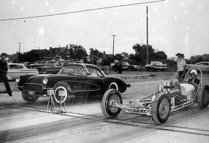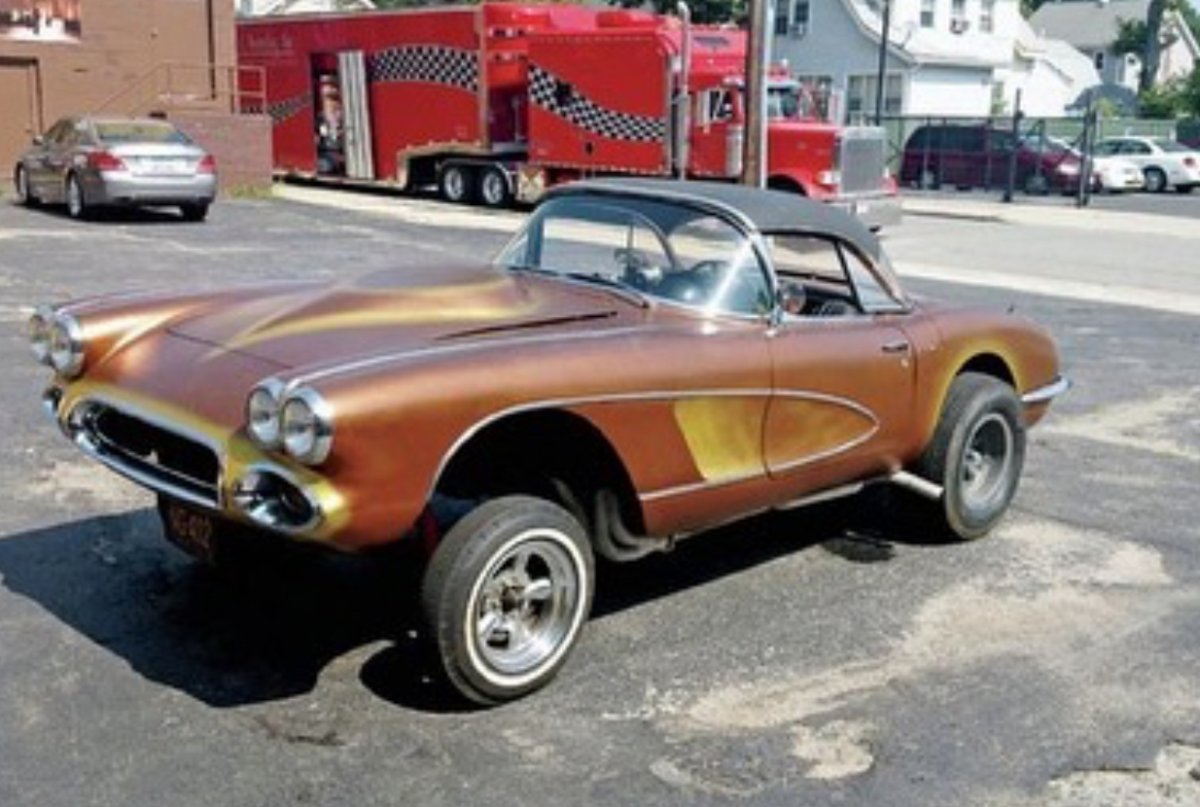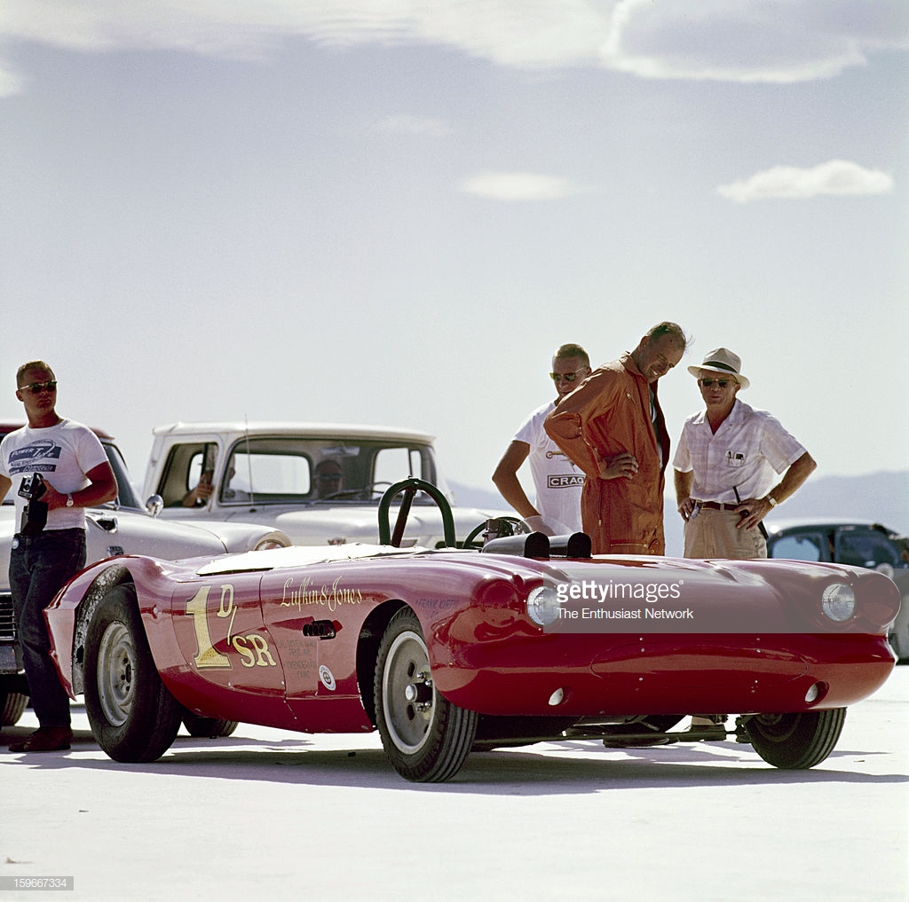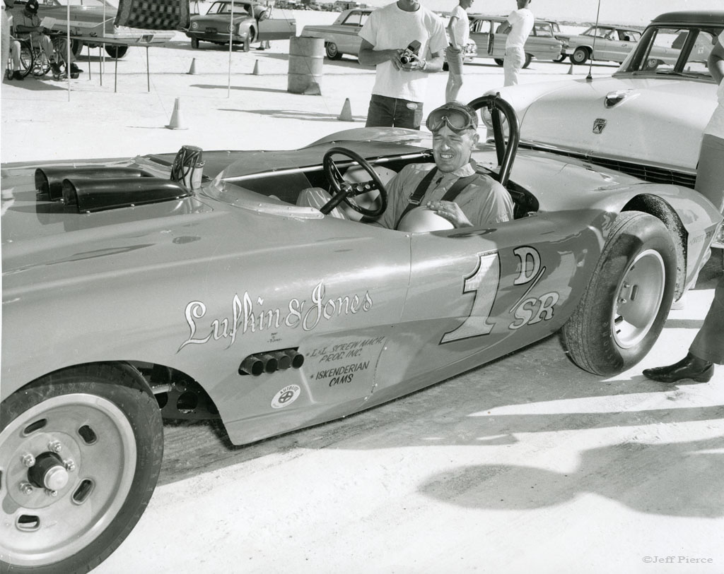 LB I have tried to find bits and pieces on the X car as you refer to it. I believe this picture was from 1964. The car was built for Bonneville as I understand. It was originally referred to as the Lufkin Jones Corvette and I have seen it referred to as the 1 car as the number it carried at Bonneville in 63. It was built be Jack Lufkin and Ak Miller out of a discarded 60 Corvette frame-the body is to resemble a 1962 Corvette although some may argue with the execution-I happen to like it. Frank Kurtis also worked on the car mainly responsible for the front axle and front suspension. It carried a fuel injected small block Chevrolet and stock Chevy rear with different gears depending on the distance etc. I believe it set some records in the 200mph range in 63 but I have read different accounts and not sure which is correct. As I understand the car returned to Bonneville in a different class in 64 and was now labelled X. Not sure of any records set that year. I believe I have another picture of it at Bonneville with X on the side but must have mis-filed it. The car was sold to Doug Thorley (Doug's Headers) and was used for various records including on the dragstrip and was driven by a number of drivers including Terry Hedrick. I believe the car has survived although I am not sure where. You cannot argue though that the car was touched by a number of greats and deserves a place in Corvette lore for sure. Maybe more as a hot rod than a gasser but it is cool. In 63 with Lufkin and Jones visible on the car As X with Frank Kurtis name on the front fender At the dragstrip