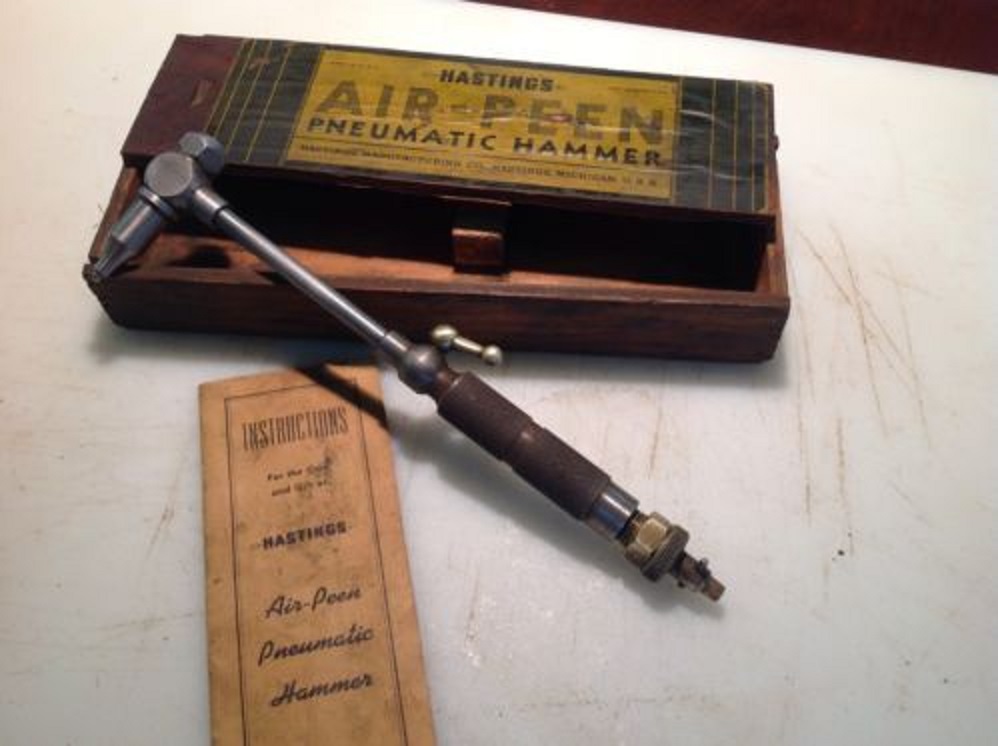 Actually, that's a little too simplistic. Peening as it is commonly used puts the surface in a state of compression which causes it to resist cracking. This makes the part more resistant to breaking but not really stronger. Peening a relatively thin section can also expand it which is why I speculated as to this tools purpose. We won't really know until someone comes up with the complete instruction sheet.