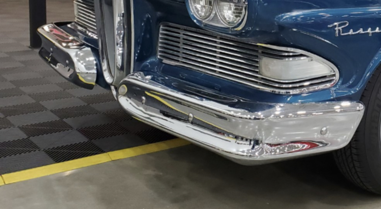 Yes, the kit does look great on there. There are only certain makes and years that they look good on, and tri-five Fords are one of them. Even though this thread is not about continental kits, it is a topic that is tangentially related to the discussion of bumpers. I think that for cars with continental kits, the rear bumper needs to have two design aspects for it to work, 1) the bumper needs to have a certain visual weight to balance with the heaviness of the kit, and 2) it needs to wrap the sides and have a nice looking termination to finish that. The first reason is why when discussing 57 Fords, the kit IMHO, looks better with the Fairlane bumper than the Custom bumper, and the latter reason is why I think full kits (not baskets) don't look light on Cadillacs, 57 Chevs and others. They look GREAT on Oldsmobiles.
