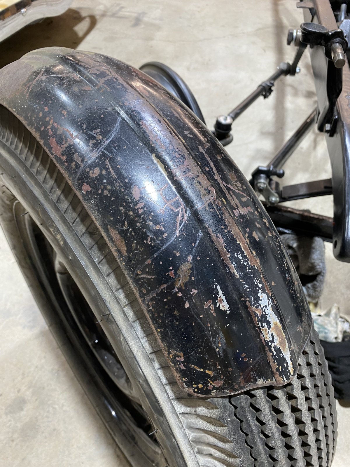 View attachment 6170676 Hello, When we owned a Harley Sportster, the front fender was a nice accessory. It kept the crapola off of my/our faces and chests from all of the road grime. As much as it was stock, we wanted a modified drag bike look for our custom motorcycle. We tried to take it off and go for a long coastal ride. After a trip southward for of about 30 miles to Laguna Beach, we just enjoyed the ride and ambience, but we hated the small flying objects kicked up from the “no front fender” application. So, when we got home, the fender came back on and now, it was comfortable on all future road trips. Even my wife, sitting behind me still got blasted from those flying objects that were hard to see, but we felt everyone of them. Much later, some of the old hot rod roadster builders were also in need of fenders for the front exposed tires. If the open wheel roadsters or RPU were over 1500 lbs, then front fenders were a requirement. So, like most, a mad dash to the junkyards to look for replacements ensued. Jnaki At a photo shoot, one roadster owner that was around the location asked where we got the custom front fender. He was measuring it and said it was perfect for his front tire situation. Nice coverage and he could use the existing holes to create a mount for his tire locations. The look was slightly flat, but would cover his front tires perfectly. Note the full tire coverage and not like the photos that have been shown so far. Any exposed tires with narrow fenders will throw stuff up, so why not get something that covers the tires, but still looks nice. So, you might try a Harley Davidson dealer or a myriad of fender companies online. Amazon comes to mind. YRMV