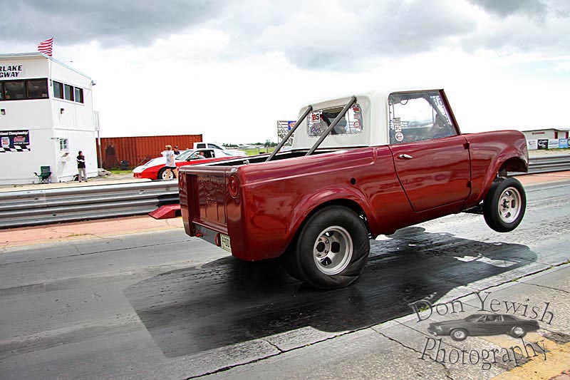 Got 1 pass in and it was a reasonably good one... for the first 200 ft ... and then it kinda sorta did nothing special. 10.90 / 118. Plenty of fuel pressure this time... in fact too much. I will have to re-think my regulator set up. The Scout left off idle and pulled the front end 3 feet and carried them out past the 60 ft timers. I have never done this before without using the trans brake. New motor makes some serious torque. 60 ft was a personal best 1.41 and that was tripping the lights with the back wheels.